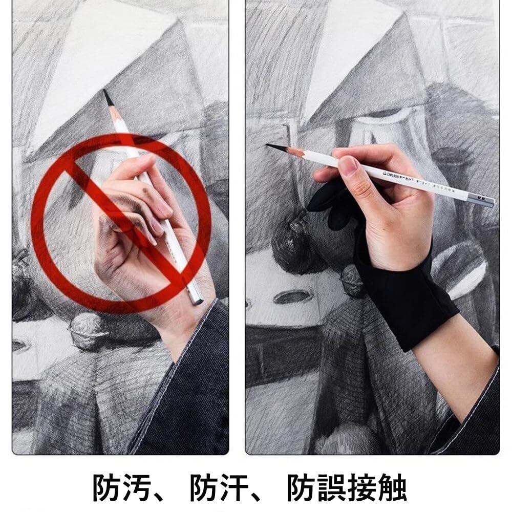 [誤動作防止機能】ペンタブレット、LEDライトパッド、ペンディスプレイの誤動作を防止し、スケッチやスムーズな描画を可能にする2本指手袋。