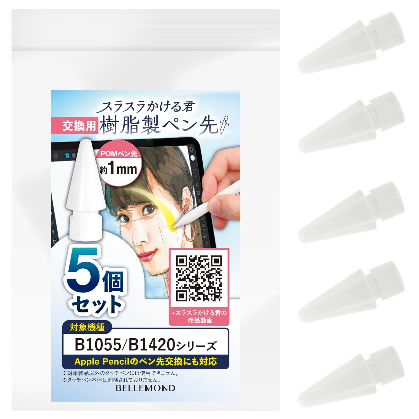 【セット内容】樹脂(POM)素材ペン先 × 5個【商品について】本商品は、ベルモンド「スラスラかける君」に付属する樹脂製ペン先の交換用です。Apple Pencil全世代に対応しており、アップルペンシル互換の樹脂(POM)素材ペン先・替え芯をお探しの方に。