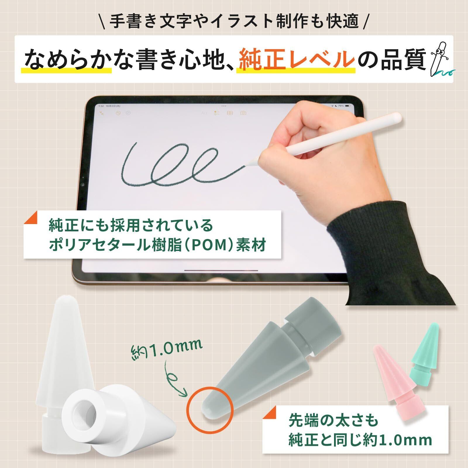 【豊富なカラーバリエーション】全10色の豊富なカラー展開!お好みの色を選んで、ペンシルとのコーディネートや推しカラーでのアレンジをお楽しみいただけます。【純正と同じ約1mmの先端】純正で採用されているポリアセタール樹脂(POM)を使用。先端の太さも純正と同じ約1.0mmで、純正のような、なめらかな書き心地を実現しました。
