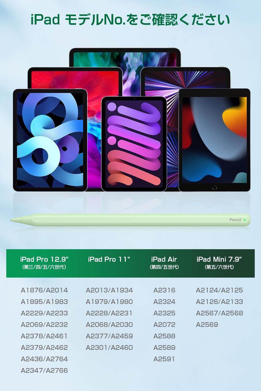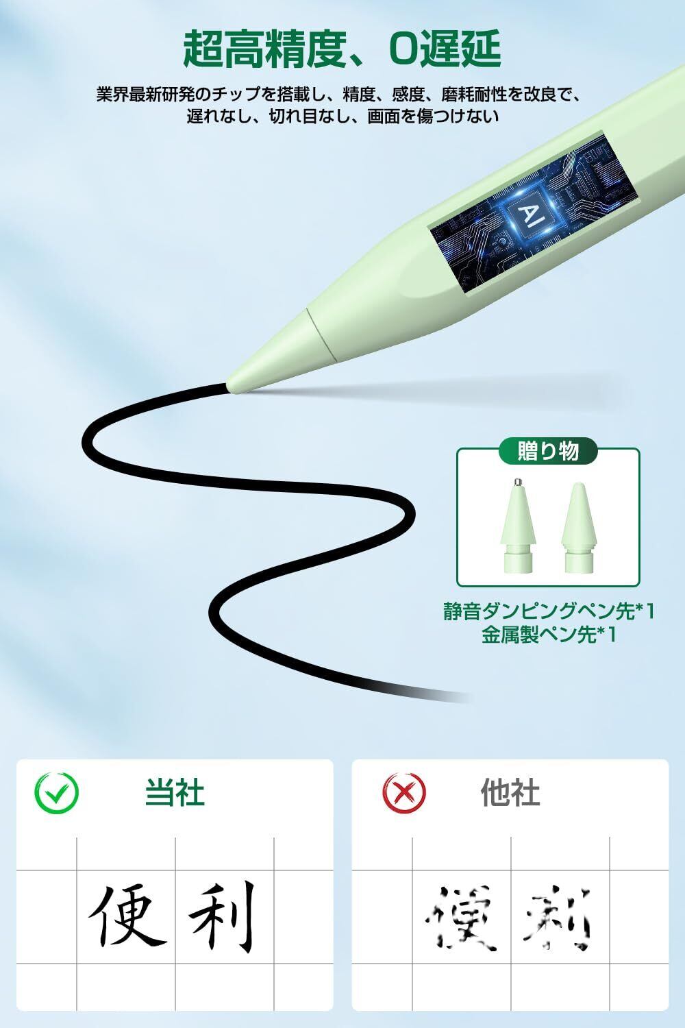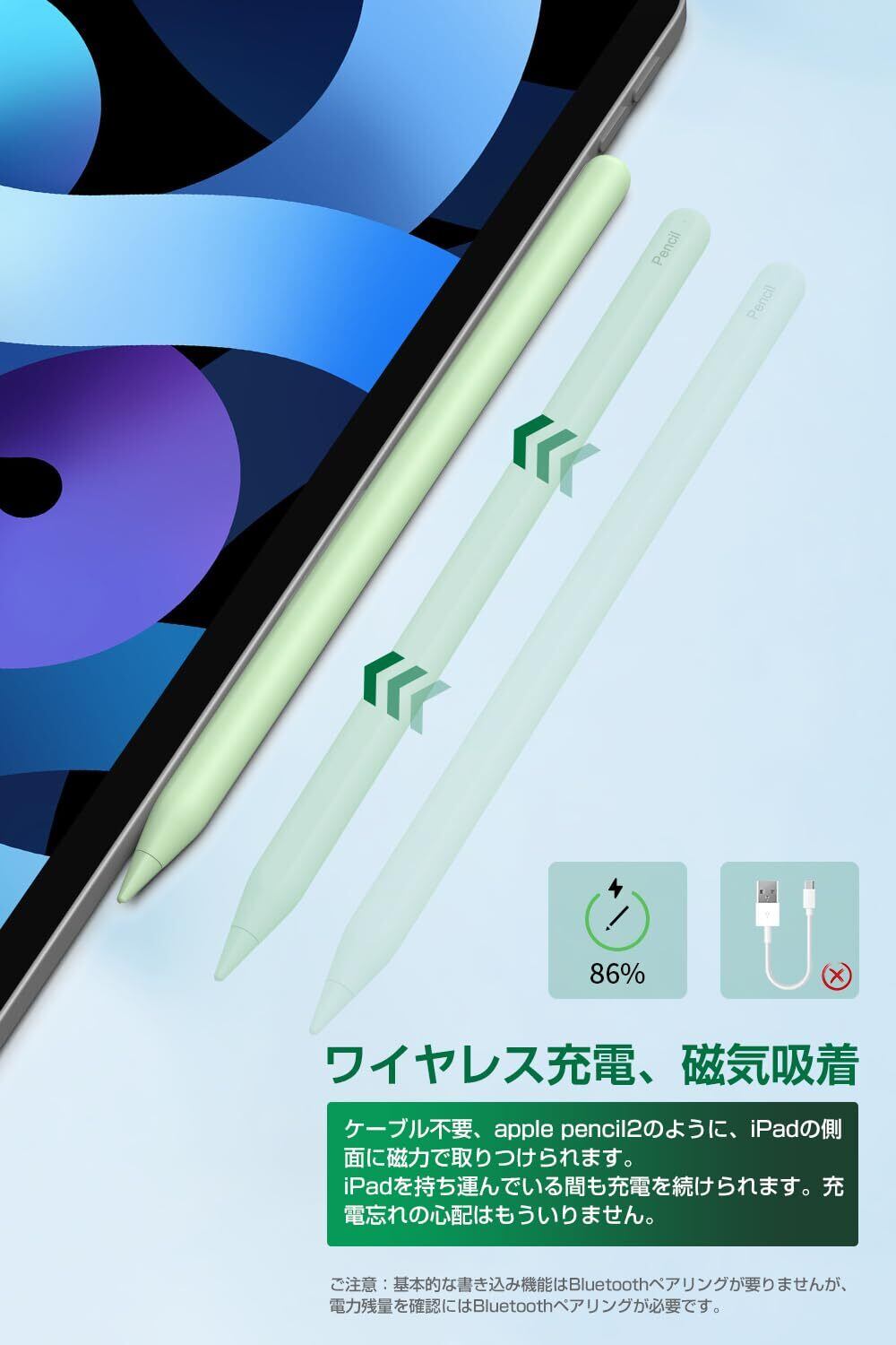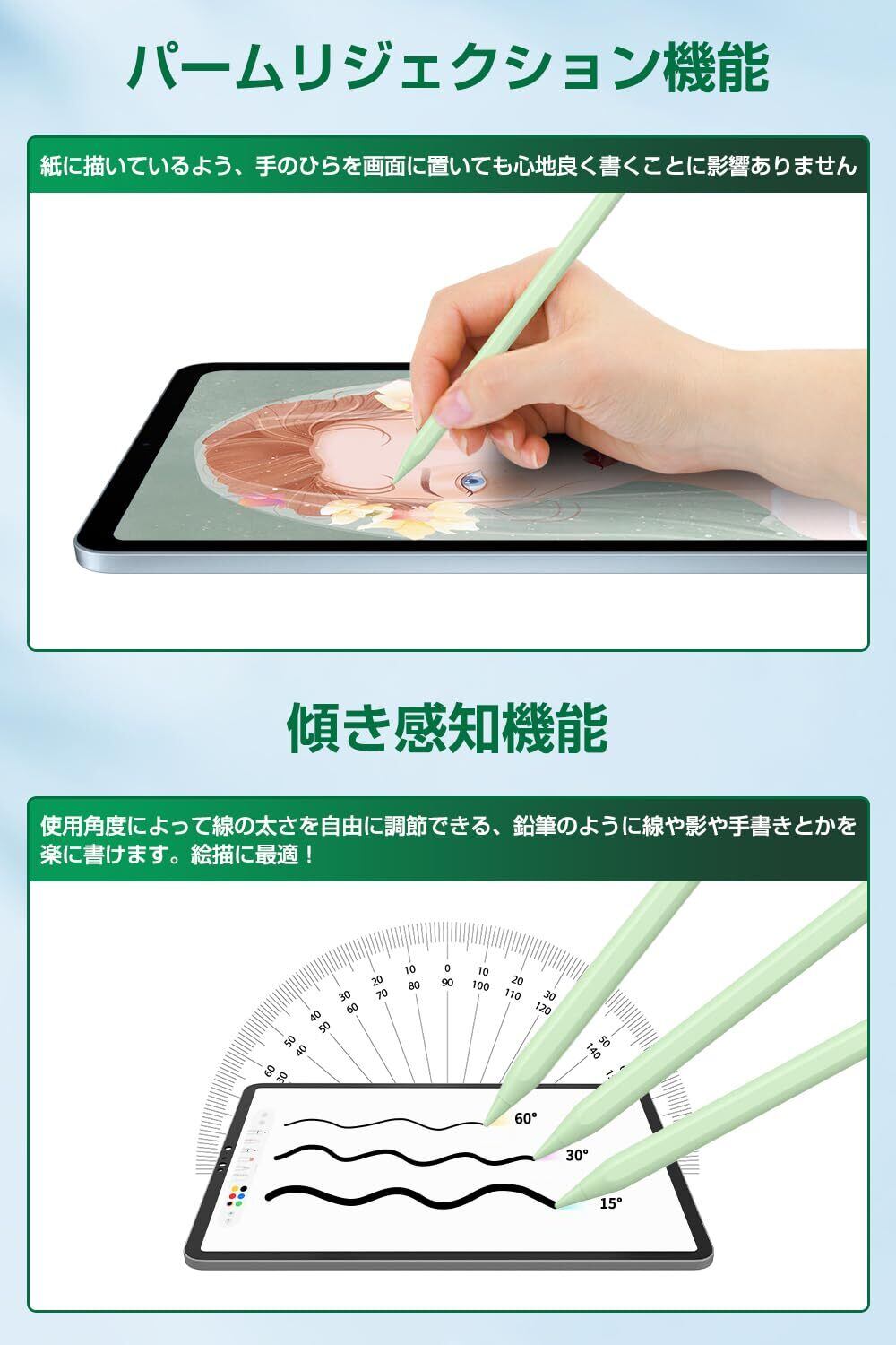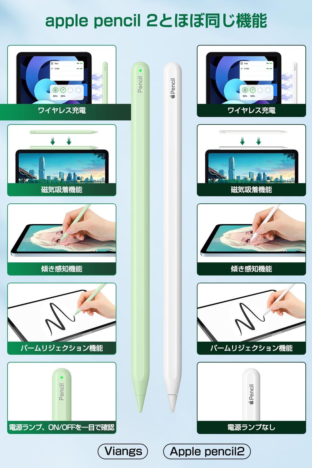 【正規認証品 ワイヤレス充電】アップルペンシル Viangsタッチペン ipad ペン 磁気充電 apple pencil互換スタイラスペン 超高感度 極細 0遅延 ペンシル 傾き感知/誤作動防止/磁気充電対応 タッチペン タブレット用 (グリーン)