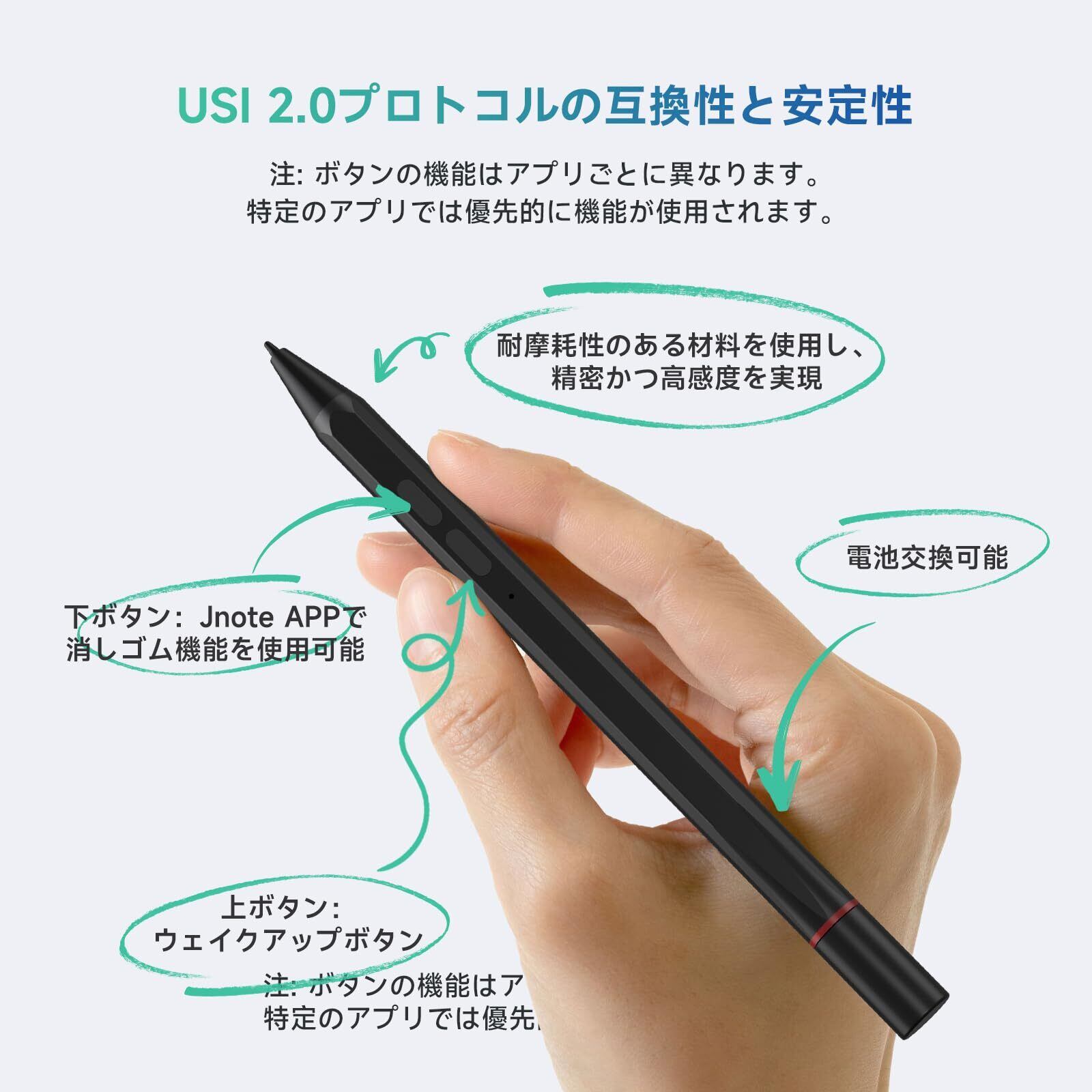 【USI 2.0プロトコル】USI 2.0プロトコルを採用しており、強力な互換性があり、さまざまなプラットフォームでスタイラスを安定して確実に使用でき、多様な使用ニーズに対応します。紙に書くのと同じくらい便利かつ自由に、タブレットの上に手のひらを自由に置いてください。