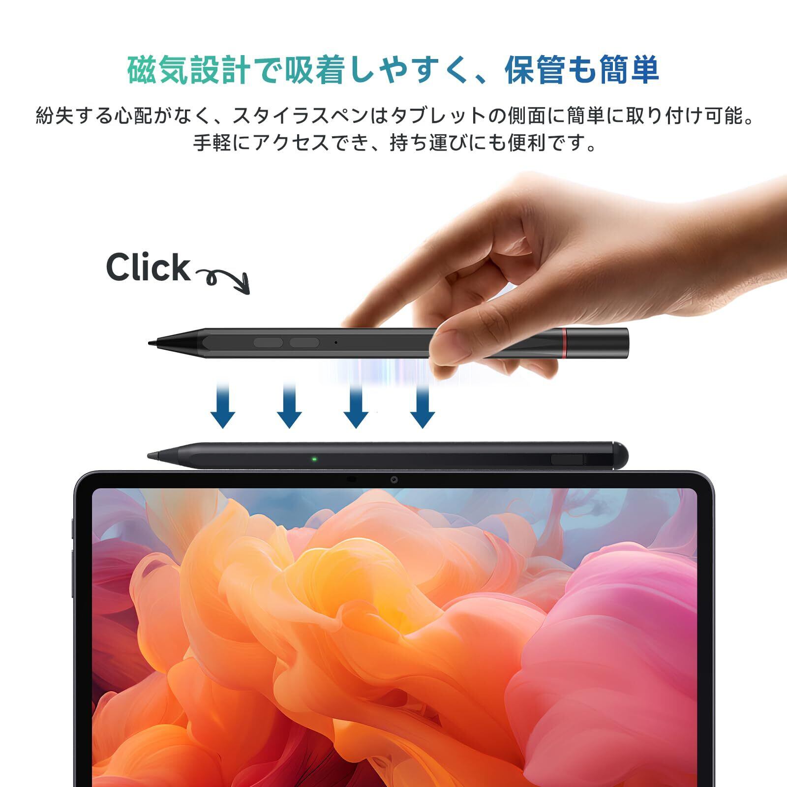 「このスタイラスペンは、自動接続機能を搭載しており、煩わしい設定は不要。ペンを手に取ればすぐに使用可能で、あなたのクリエイティブなインスピレーションを逃しません!」