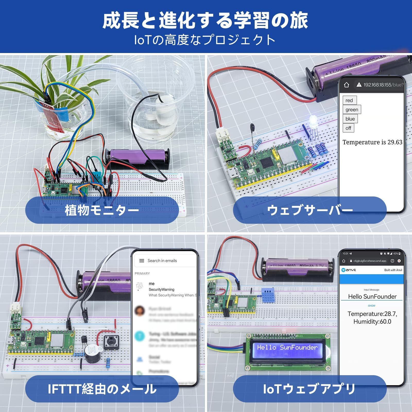 「『SunFounder Raspberry Pi Pico W アルティメット スターターキット』は、450以上のアイテムを含み、117のプロジェクトに挑戦できる強力なセットです。初心者から上級者まで、自分のアイデアを形にするための最適なキットです!」