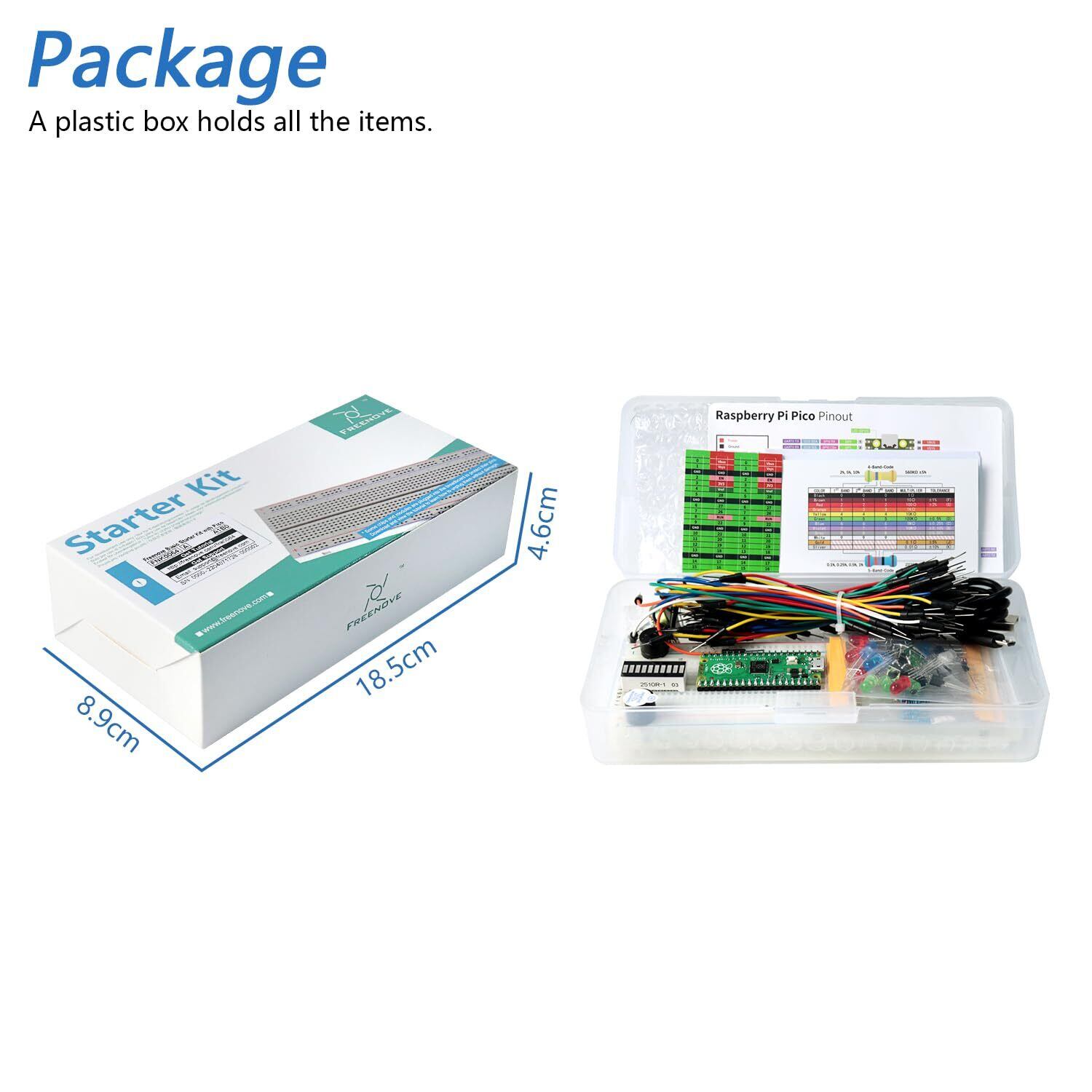 Freenove Raspberry Pi Pico基本スターターキット(付属),デュアルコアArm Cortex-M0+マイクロコントローラー,386ページの詳細なチュートリアル,142アイテム,55プロジェクト,Python/C言語コード