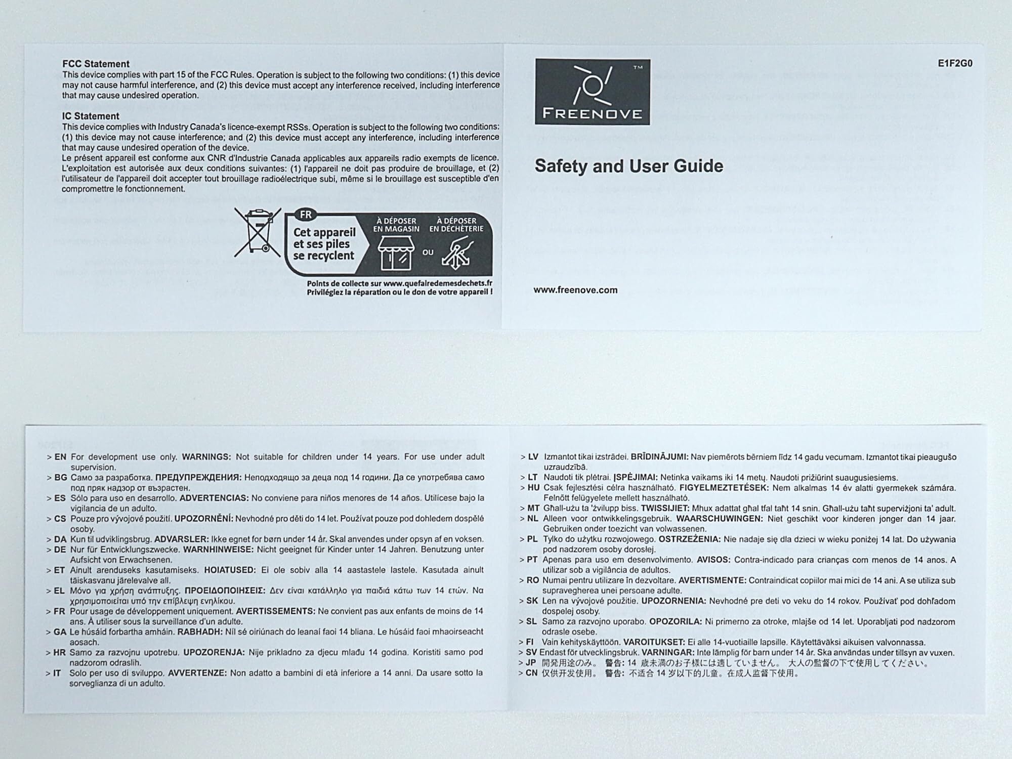Comes with detailed tutorial and Python, C, Java, Scratch, Processing code. (Download needed, no paper tutorial.)