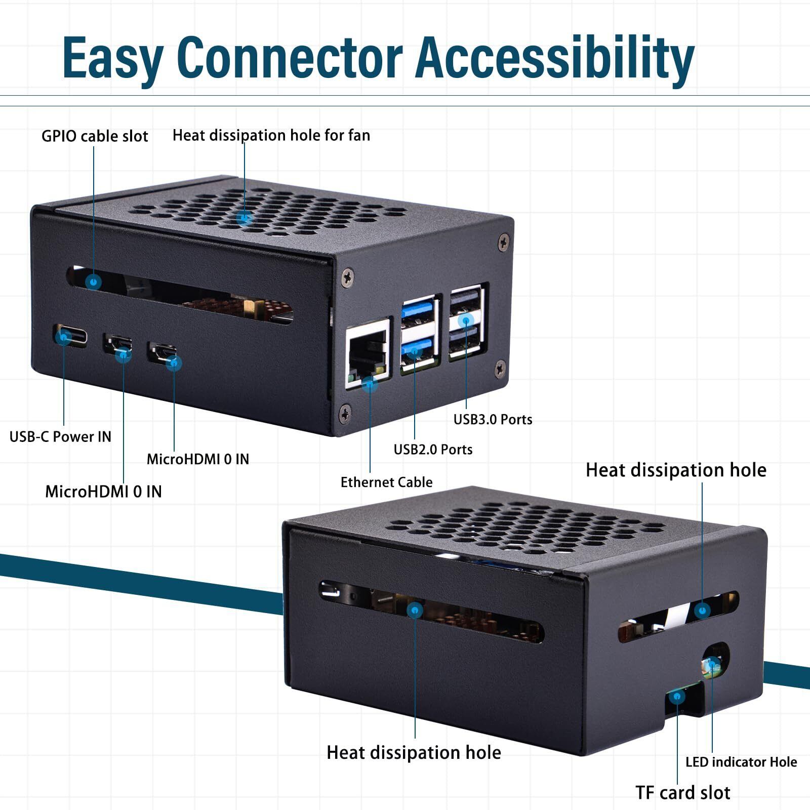 【ほとんどのポートへのアクセス】GeeekPi Raspberry Pi 5 メタルケースは、USB-C 電源ジャック、マイクロ HDMI ポート、USB ポート、イーサネット ジャック、SD カード スロット、電源ボタン、GPIO ポートなど、Raspberry Pi 5 ボードのほとんどのポートに正確にアクセスできます。 。
