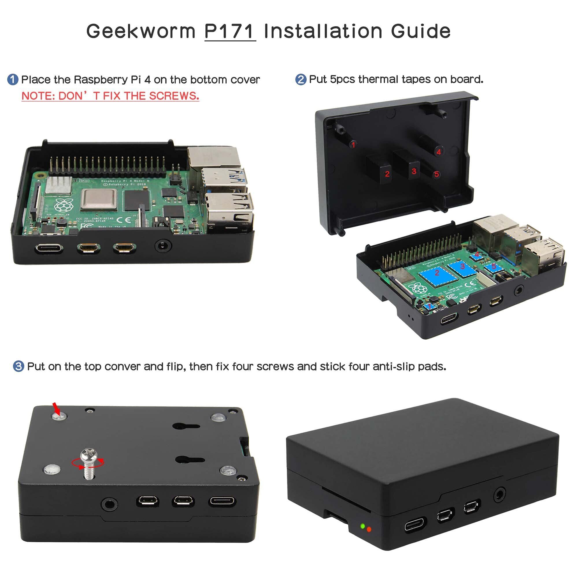 Geekworm Raspberry Pi 4 ケース、アルミ合金ケース、パッシブ冷却、ラズベリーパイ4Bのみ適用-P171ブラック