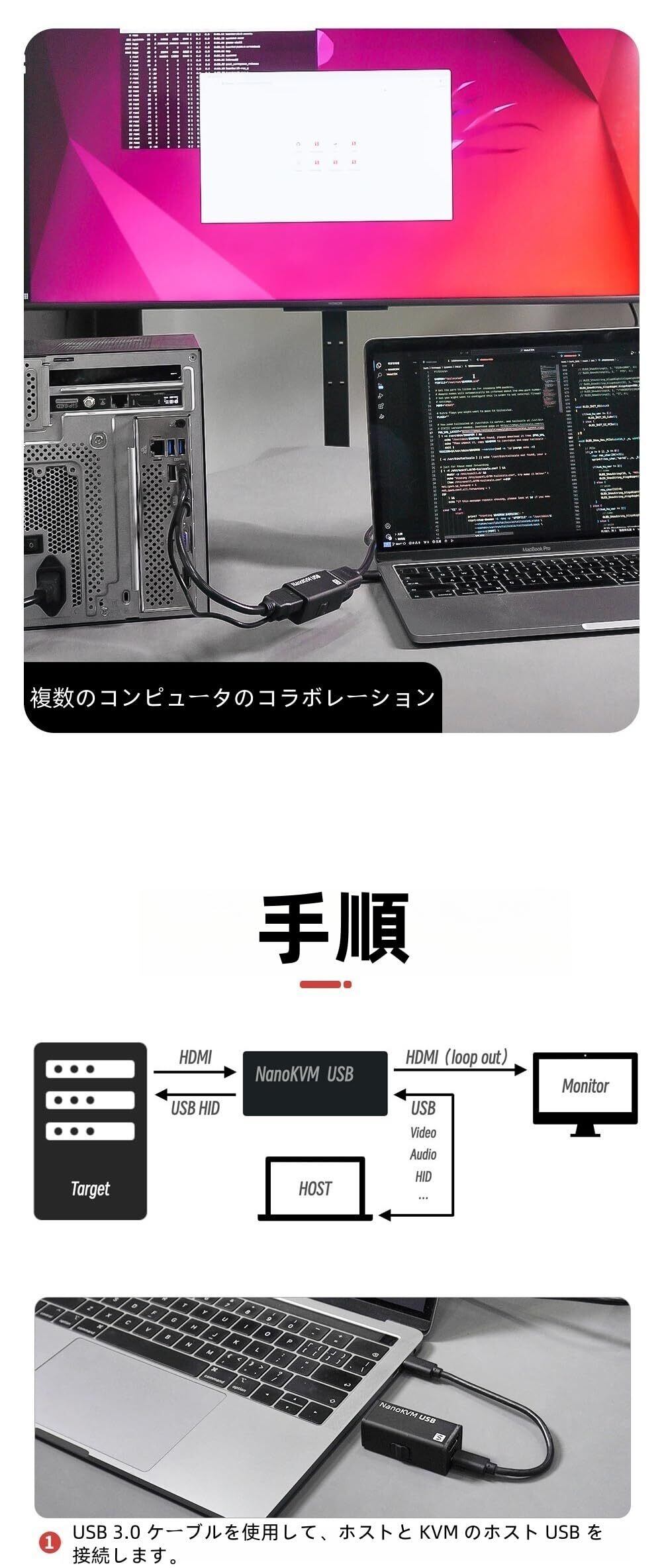 「このKVMは、その名の通り指サイズで、持ち運びや手元での使用が極めて快適です。狭いスペースでも大活躍し、2台以上のデバイスをスムーズに切り替えながら使用できるため、ワークフローの効率化が図れます!」
