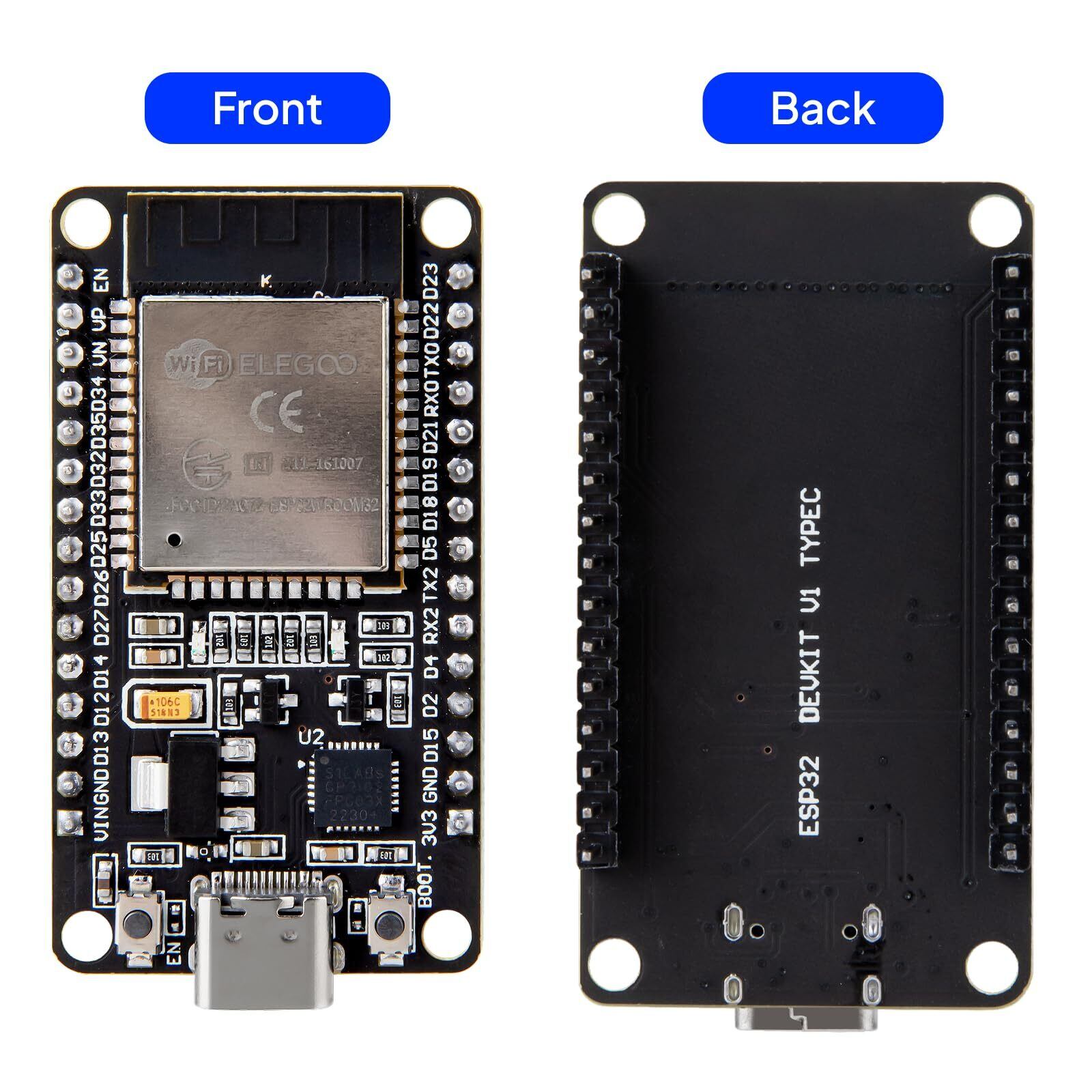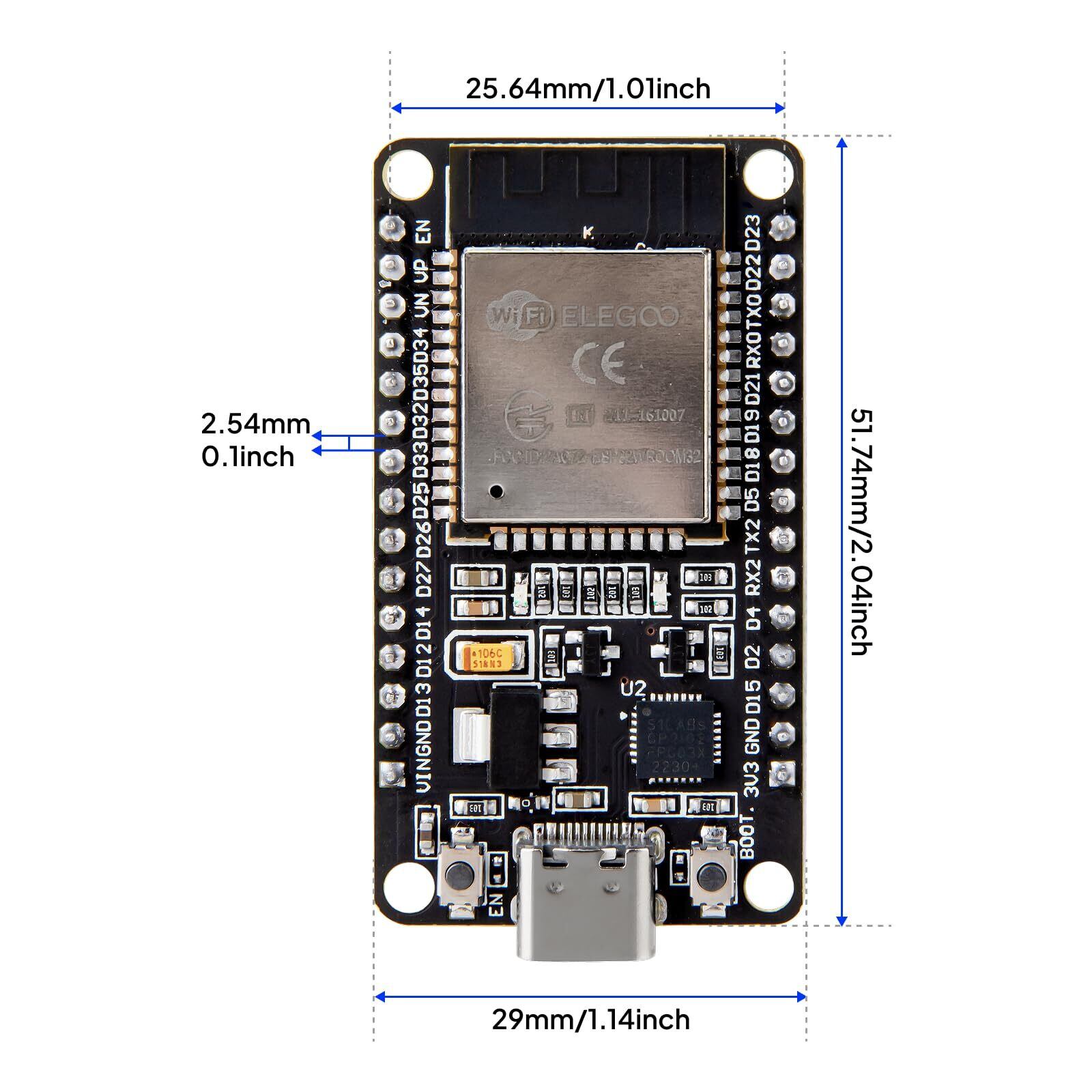 ELEGOO ESP-WROOM-32 開発ボード USB-C 2.4GHz デュアルモード デュアルコアマイクロコントローラ Arduino IDE用 AP/STA/AP+STA対応 CP2102チップ 2個セット