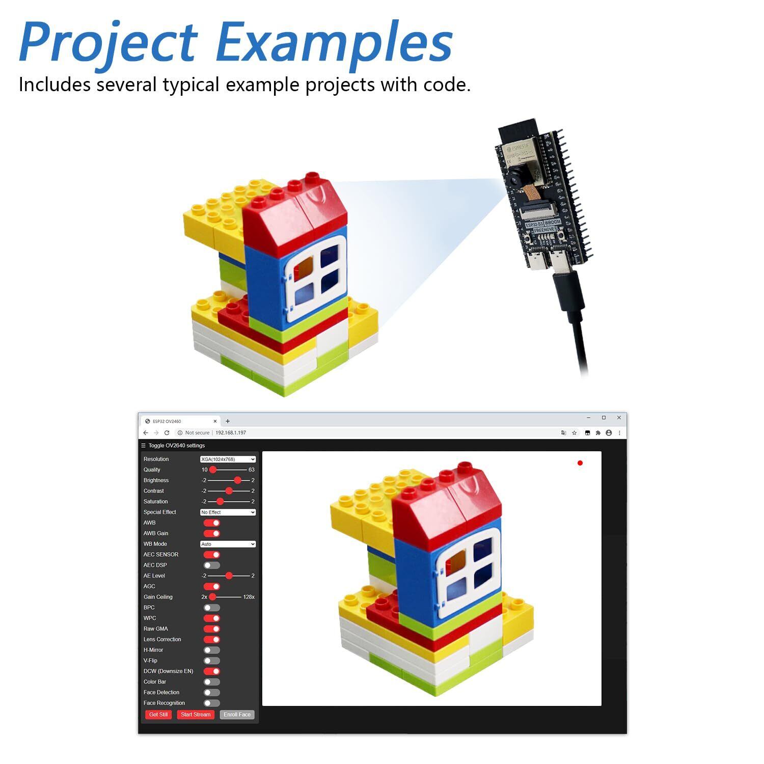 Freenove ESP32-S3 ESP32 S3 CAM ボード (8MBフラッシュ)、デュアルコア 32ビット 240 MHzマイクロコントローラー、オンボードカメラ・無線機能、Python/C言語、サンプルプロジェクト&チュートリアル付き
