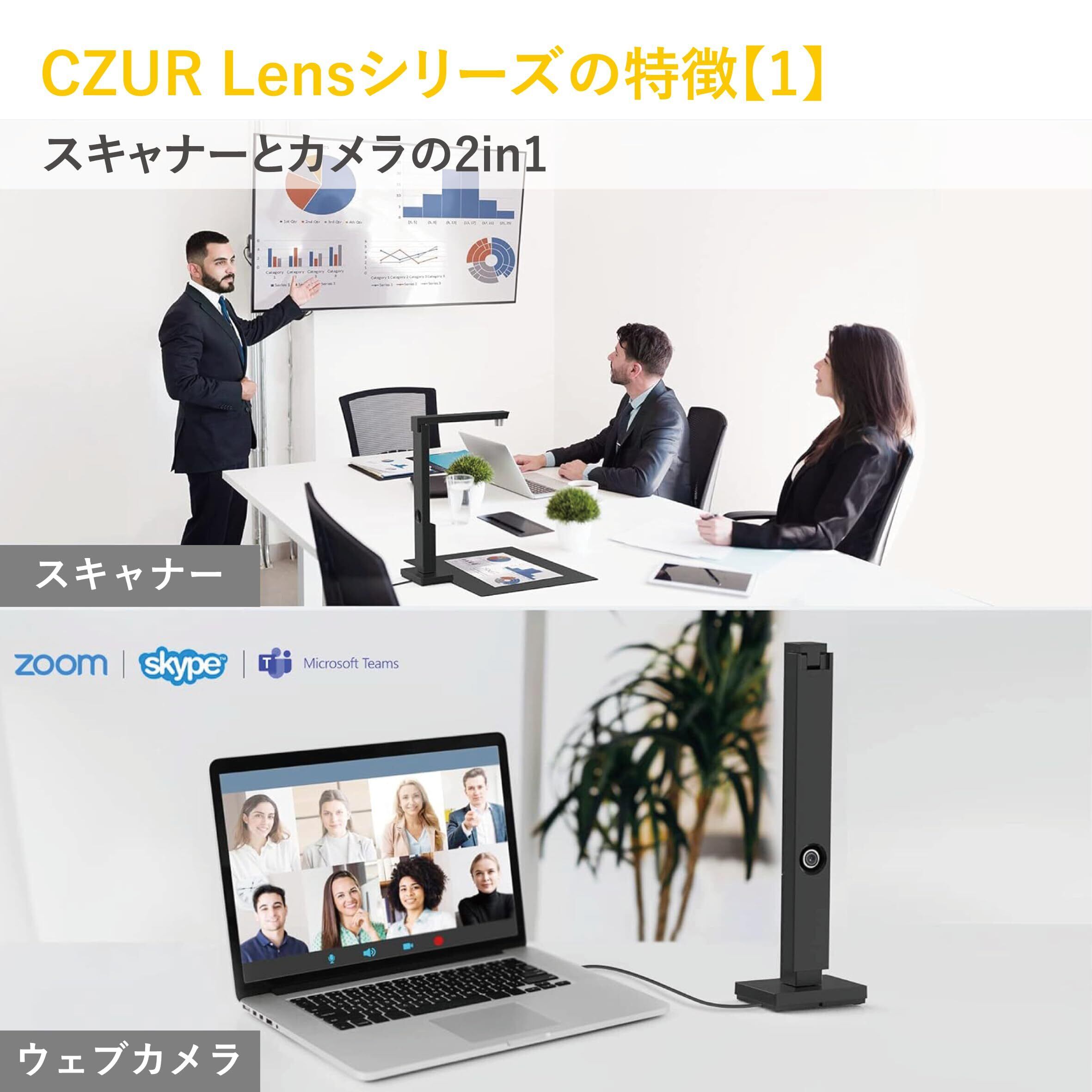 CZUR LensPro-1200 (USBC付き) 1200万画素 ドキュメントスキャナー 電子帳簿保存法対応 日本国内専用 a4 スキャナー zoom skype microsoft teamsに対応 高速スキャン オフィス 授業用 ocr 機能 windows 11 / mac osに対応 光学ドライブ不要 USB Type A/Cに対応 Type-Cコネクタ付き