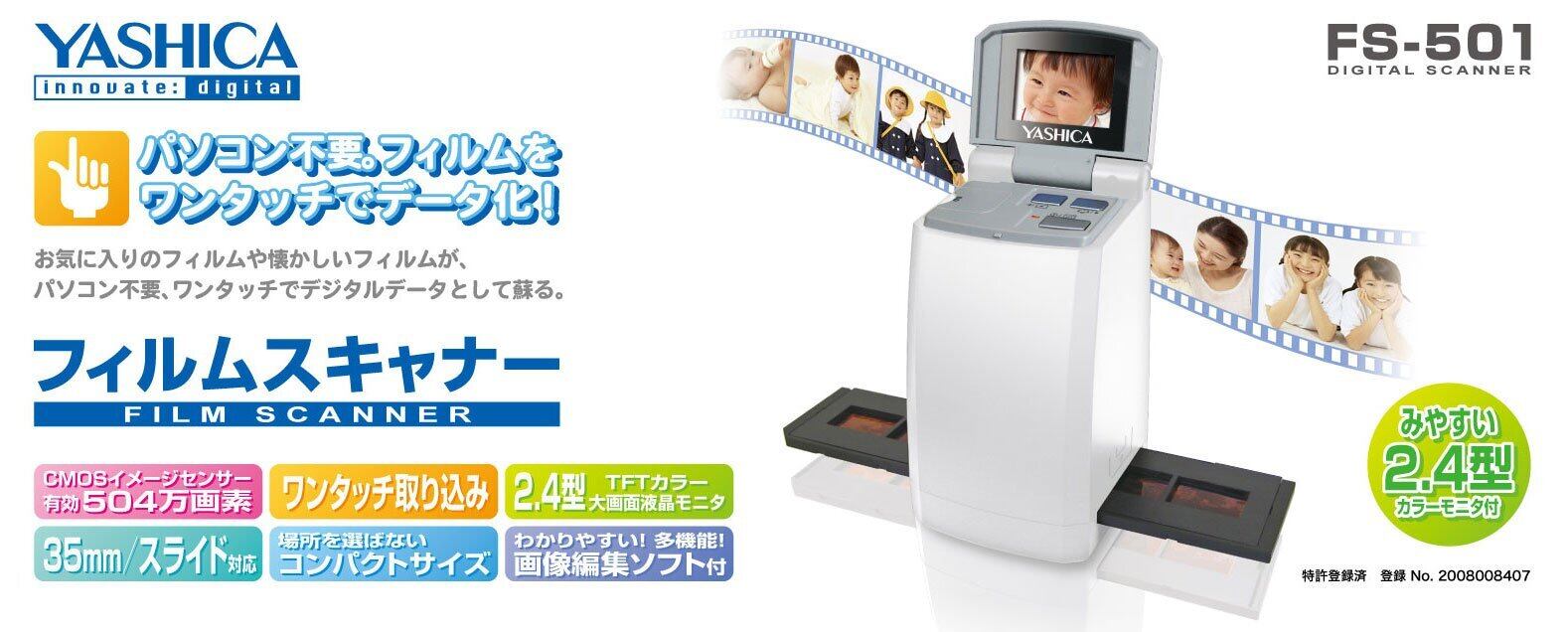 **YASHICA 2.4インチ液晶カラーモニター搭載 デジタルフィルムスキャナー FS-501 - 思い出をデジタルに!**