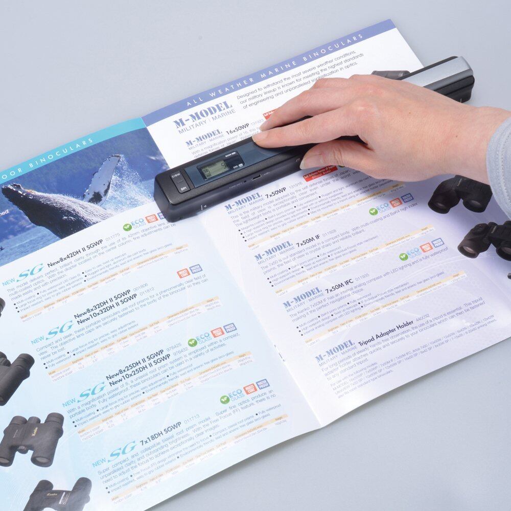 「このハンディスキャンは、A4サイズをしっかりサポート。ビジネスや学習シーンで必要な書類を手軽にスキャンし、すぐさまデジタルデータに変換します。もう印刷物を持ち運ぶ必要がありません!」