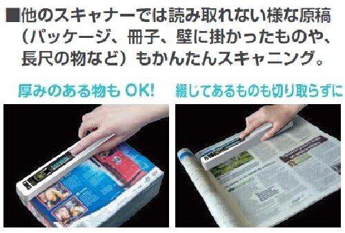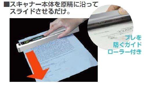ボタンひとつで簡単スキャンスタート。スリム&軽量ボディーでどこにでも持ち運べる。バッテリー駆動でいつでもどこでもらくらくスキャニング。スキャナー本体を原稿に沿ってスライドさせるだけ。他のスキャナーでは読み取れない様な原稿(パッケージ、冊子、壁に掛かったものや、長尺の物など)も簡単スキャニング。