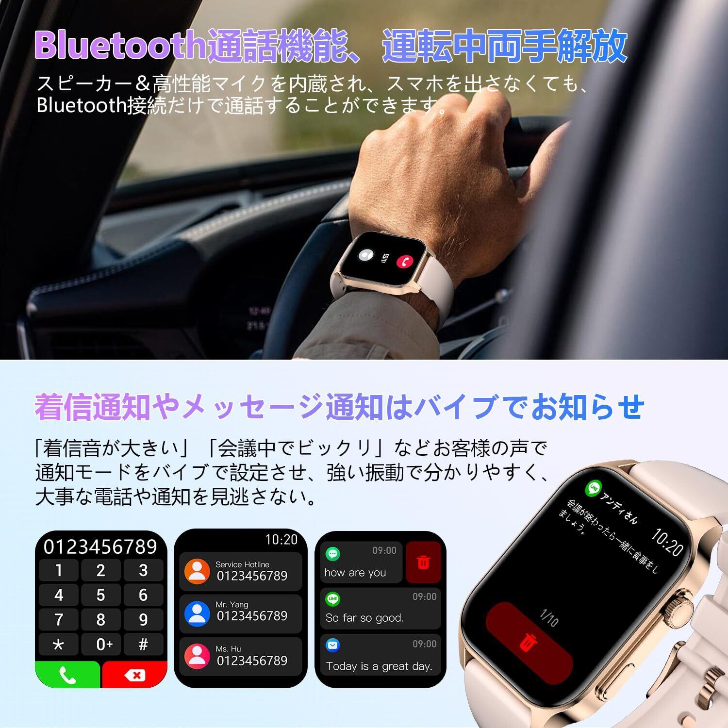 「手元から直接通話が行える便利なBluetooth通話機能付き。スマートフォンを取り出さずに、着信やSMS、Twitter、LINEの通知を受け取ることができます。振動でお知らせするので、大切な連絡を見逃す心配はありません!」