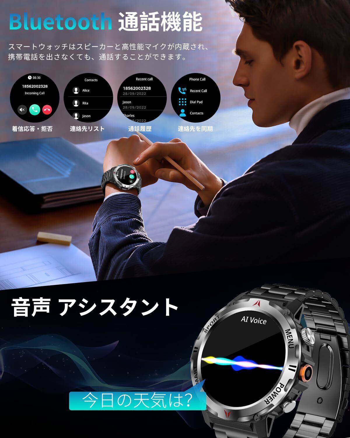 スマートウォッチ【2025改良最新型 付属ベルト2本】Bluetooth通話 LINE/メッセージ通知 100+運動モード アプリのGPS連動可能 防塵防水 懐中電灯付き スポーツウォッチ 長持ちバッテリー DIY文字盤 腕時計 歩数計 遠隔撮影 音楽制御 腕上げ点灯 アラーム 電卓 音声アシスタント 天気予報 iPhone/アンドロイド対応 1.46インチ smart watch(ブラック)