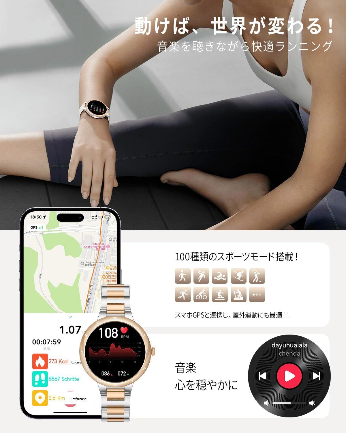 【100種以上の運動モード×GPS連動×IP68防水で、アウトドアでも大活躍】このスマートウォッチ レディース 防水はIP68防水仕様で、雨の日や手洗いのときに外す必要がなく、ランニングやウォーキングの際も安心して装着できます。100種類以上のスポーツモードを搭載し、ランニング・サイクリングなどの活動におけるステップ数やカロリーや運動時間などのアクティビティも詳細に記録し、運動習慣の管理をサポートします。さらに、専用アプリ「Fosmet Fit」と連携すれば、スマートウォッチからGPSルートや移動距離も正確に確認可能(※本体にGPSは非搭載)。また、新たに運動の自動検知機能を搭載しており、運動中を感知すると、ウォッチがリマインドしてくれます。ワンタップで運動を開始できます。さらに、わずか35gの超軽量設計で、運動中のベストのパートナーです。