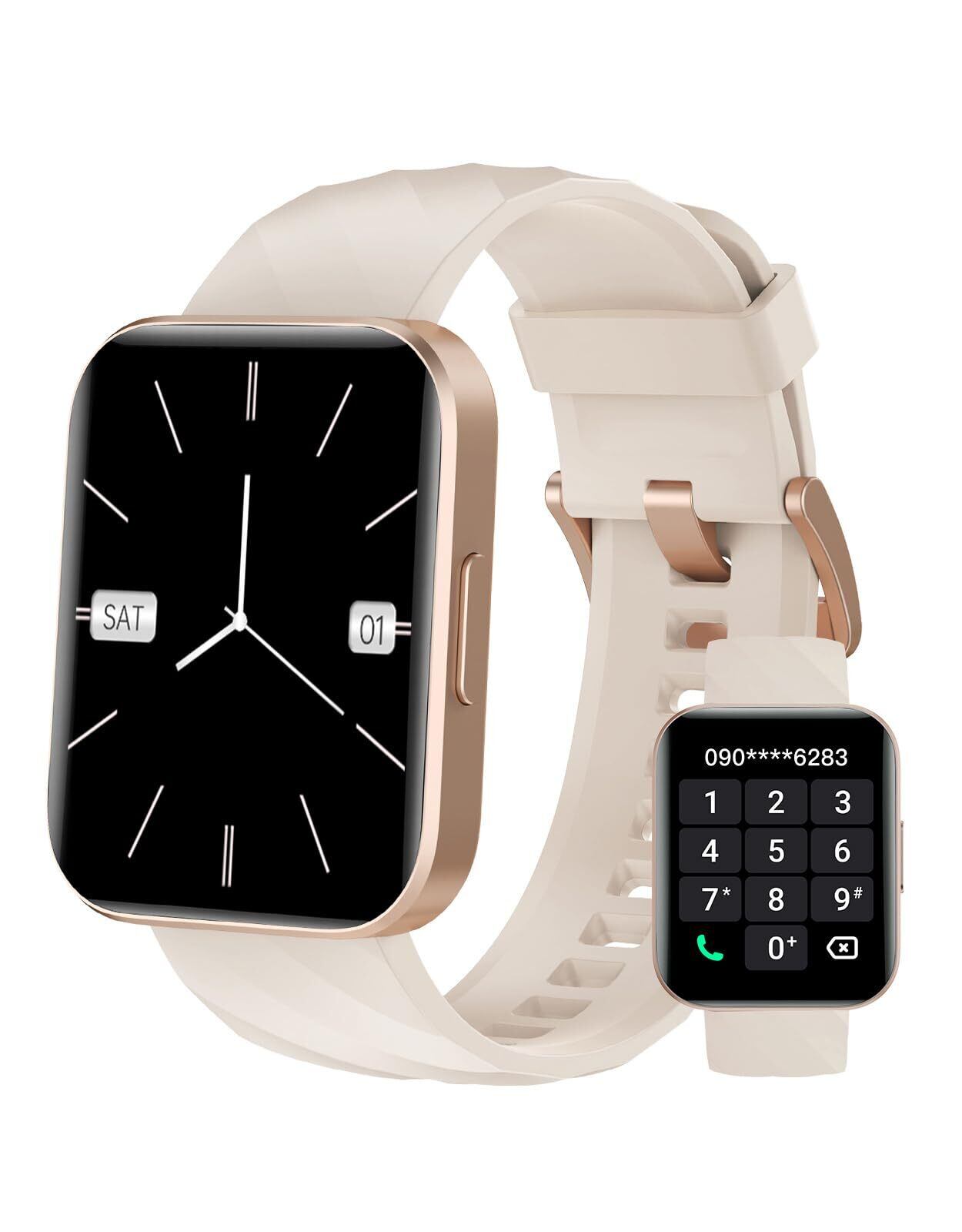 【優れた通話機能&便利なメッセージ通知】スマートウォッチは、先進的なBluetooth接続と高品質スピーカーとマイクを内蔵しており、安定した通話体験と明瞭さを実現しています。スマホを接続したら、仕事中や家事中、スマホがそばにないときでも、早速に電話をかけたり受けたりできるので、重要なことを見逃さず、効率を向上させます。連絡先や通話履歴も時計で見ることができるので、わざわざスマホで探す必要もありません。LINE、メール、SMS、Instagram、Twitterなど23種類のアプリ通知には個別のスイッチがあり、スマートウォッチの振動で知らせます。時計に内容を見れば、そのメッセージの重要性を大まかに判断して、重要な情報を見逃さない!フルタッチのデザインや簡単な画面操作は、初心者や電子機器に不慣れな方でも適用されます。