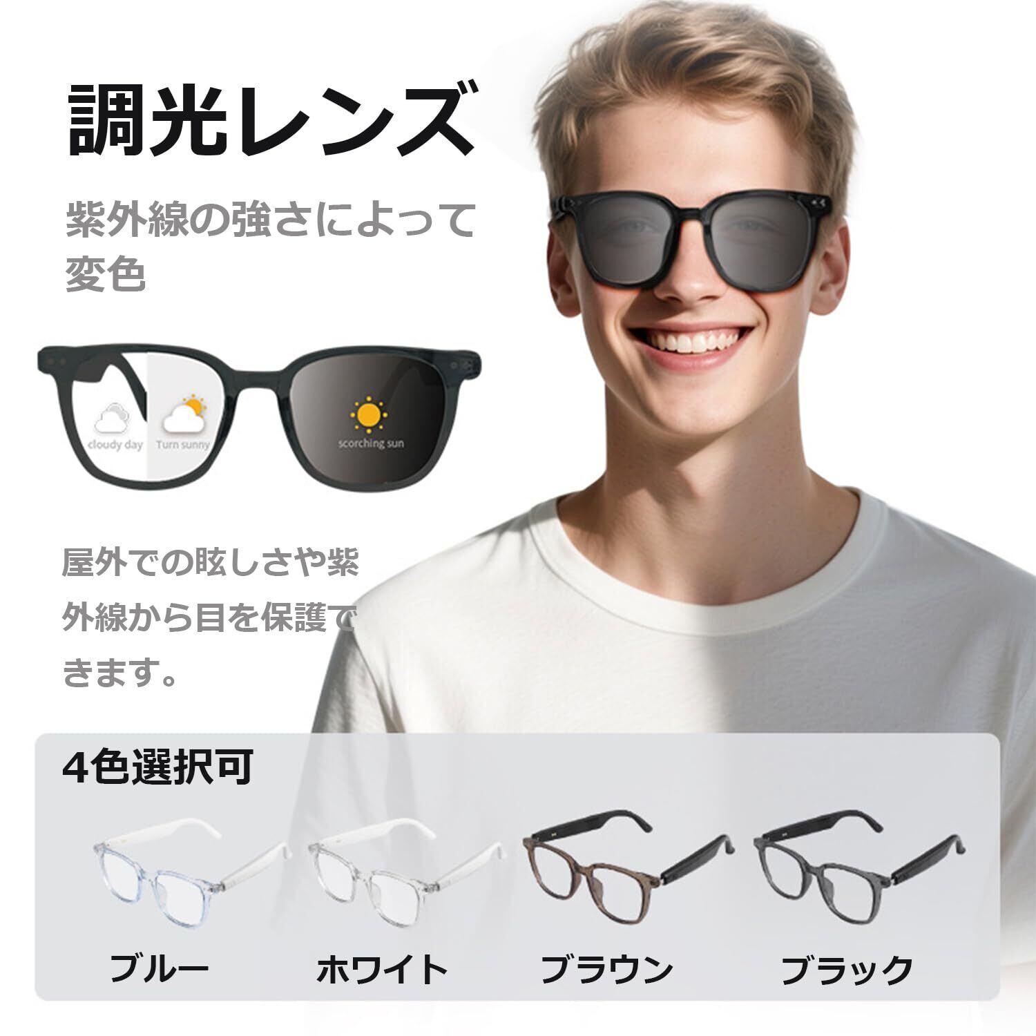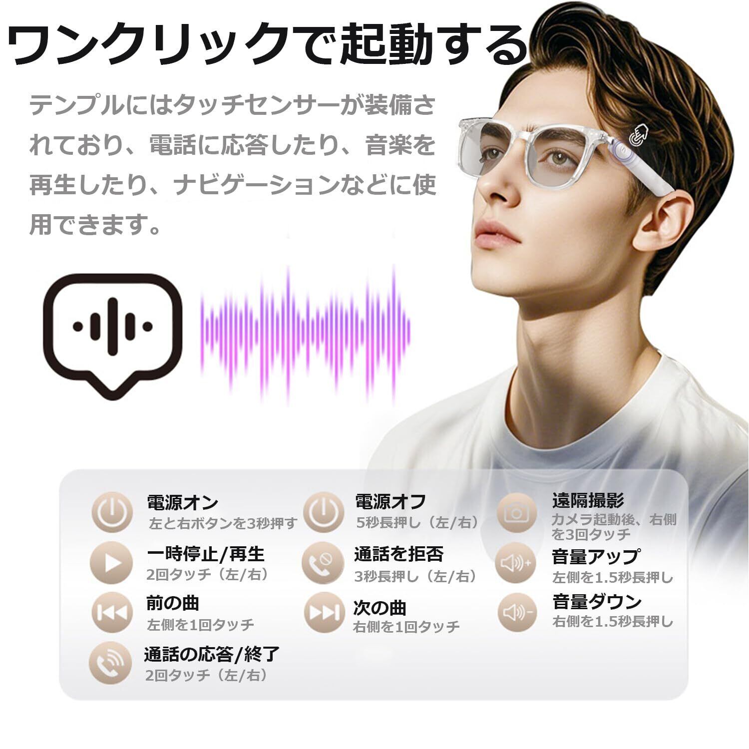 スマートメガネ スマートグラス 音楽聴ける 変色 調光 サングラス ハンズフリー タッチコントロール 旅行 スポーツ アウトドアに最適 防水 軽量