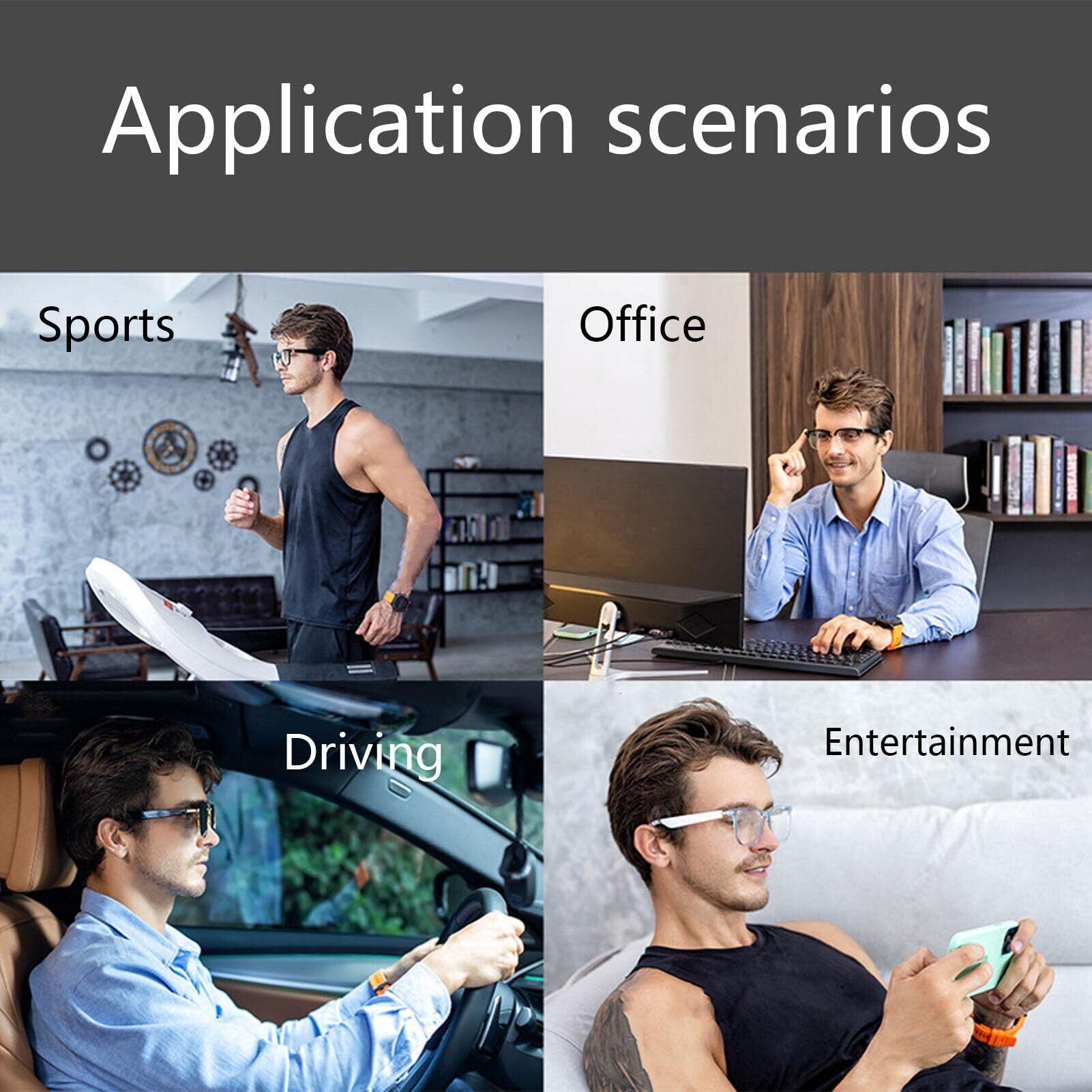 【利用シーン】 周囲に気を配りながら音楽を楽しめる開放型ヘッドホングラス。会議、運転、ゲーム、旅行中の使用に最適です。