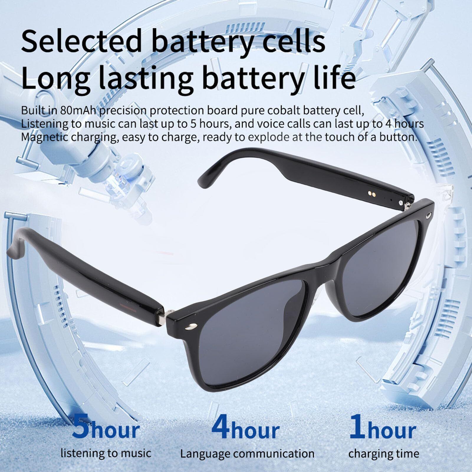 【ノイズキャンセリングでクリアな通話】スマートサングラスには、デュアルマイクビームフォーミングAI通話ノイズリダクション機能が搭載されています。この技術により、通話時の音声品質をインテリジェントに改善し、周囲の雑音を効果的に抑えることができます。特に会議や重要な電話での音声コミュニケーションが安定し、クリアな音声でお互いの意見をスムーズに交換できます。ビジネスシーンでも活躍すること間違いなしです。