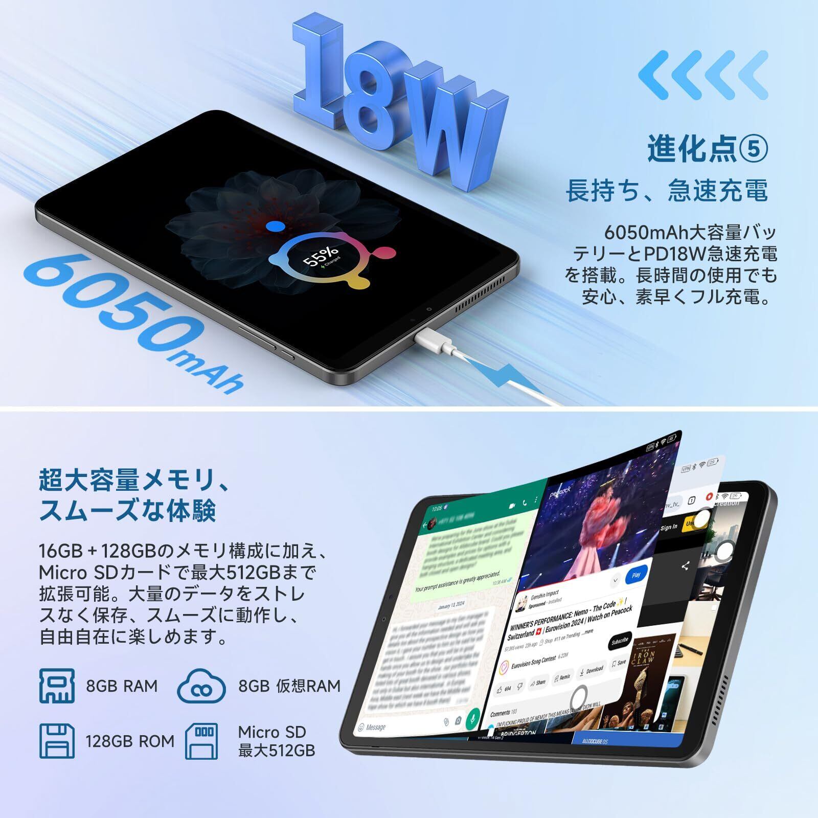 「この『ALLDOCUBE iPlay60mini Pro』は、8.4インチのコンパクトサイズでありながら、顔認識機能や4G LTE、デュアルスピーカーを搭載した魅力的なタブレットです。解像度1920×1200のFHDディスプレイは、動画鑑賞やゲームに最適で、最新のAndroid 15が快適な操作性を提供します。さらに、16GBのRAM(8GB+8GB仮想)と128GBのストレージは、様々なアプリをスムーズに動かします!」