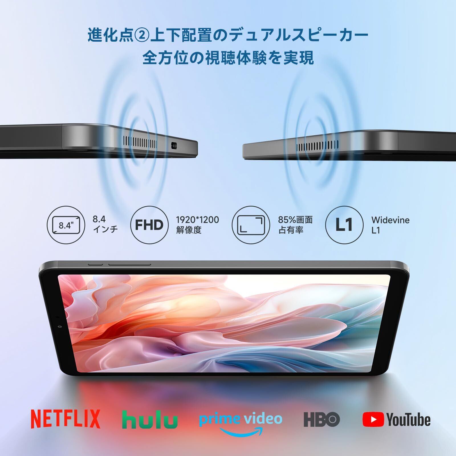 ALLDOCUBE iPlay60mini Pro 8.4インチタブレット 顔認識 4GLTE デュアルスピーカー WidevineL1 Android15タブレット 6軸ジャイロ 1920×1200FHDディスプレイ 16GB(8+8仮想) +128GB+512GB拡張 6050mAh Helio G99 PD18W急速充電 13MP/5MP アンドロイドタブレット
