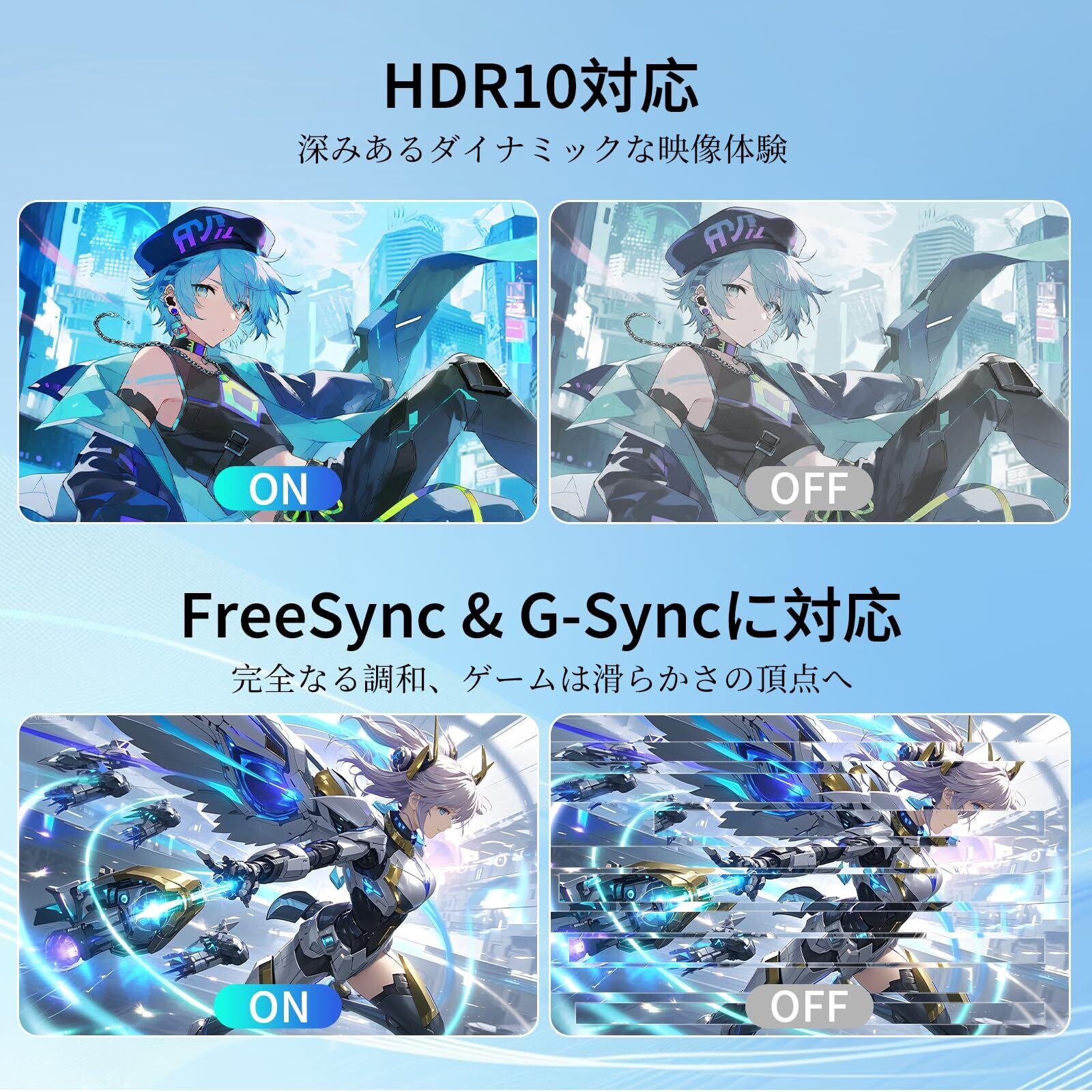 「WQHD解像度(2560×1440)により、細部までクリアでシャープな映像を映し出します。100Hzの高リフレッシュレートで、動きの速いシーンでももらうことなく快適に視聴できます。HDR10対応によりダイナミックな明暗表現が可能です!」