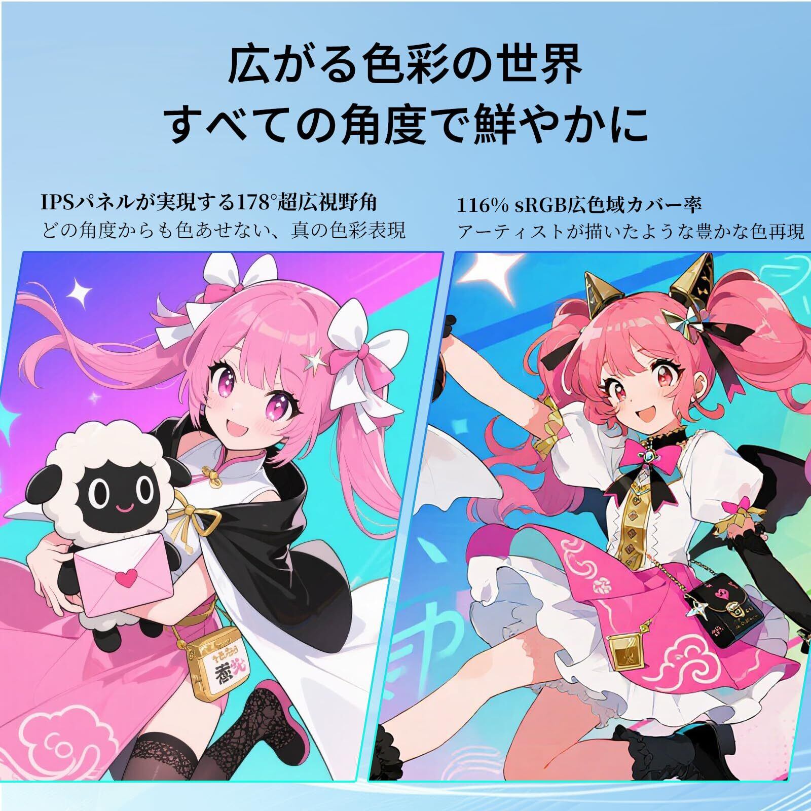 【高精細WQHD IPSパネルで没入感ある視覚体験】2560×1440のWQHD解像度とIPSパネルを搭載し、鮮明な色彩と広い視野角を実現。sRGB116%の広色域カバー率で、デザインや映像編集の色再現性に優れ、ビジネス・クリエイティブ作業に最適です。