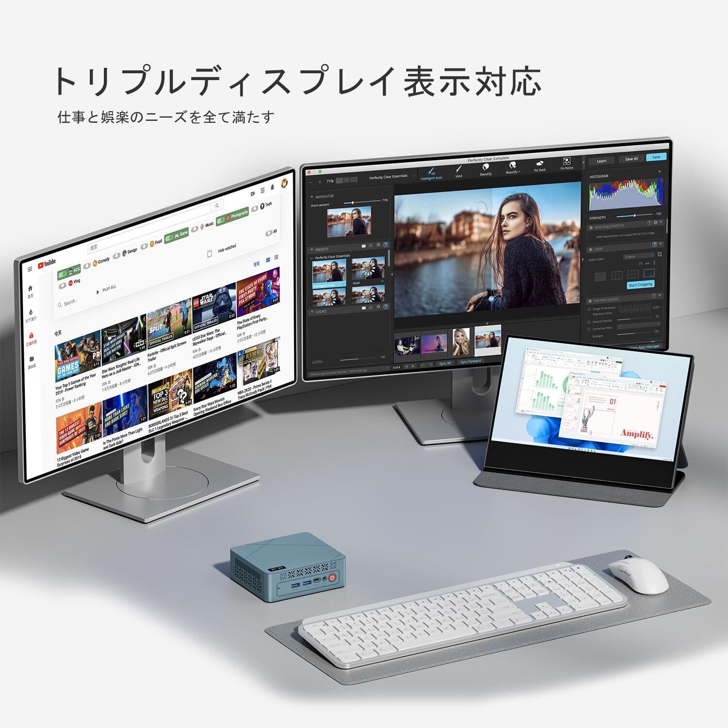 「このミニPCは、2つのHDMIポートやUSB Type-Cインターフェイスを備え、最大3画面の4K@60Hz出力に対応しています。様々なデバイスと複数のディスプレイを活用して、効率的な作業環境を実現します。」