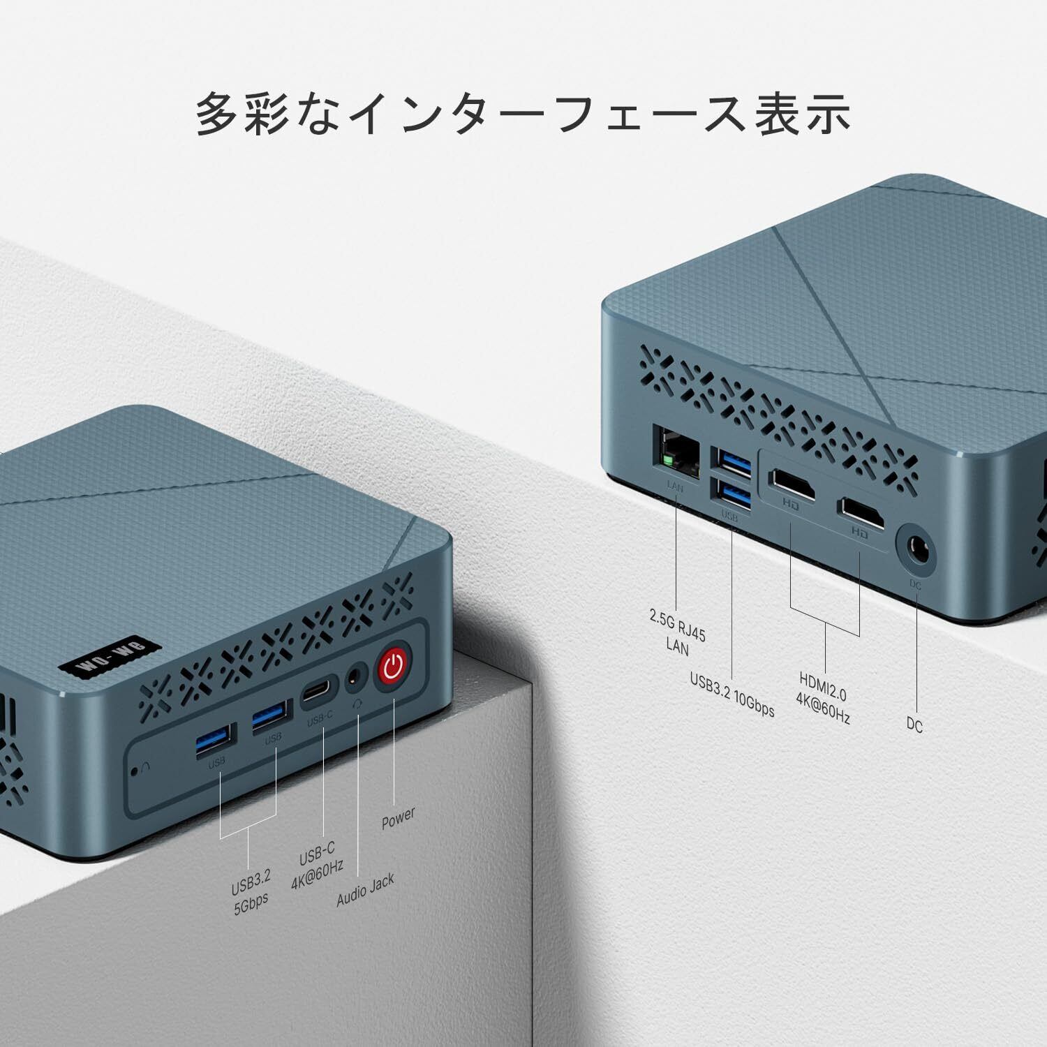 wo-we h5 INTEL ミニPC N150 最大3.6GHz 16GBメモリ 512GB SSD 2TBまで拡張可能 2つのHDMI/USB Type-C 3画面出力 4K@60Hz 2.5G イーサネットポート WIFI5&Bluetooth5.0 低消費電力 静音 高効率冷却 VESA壁掛けマウント対応