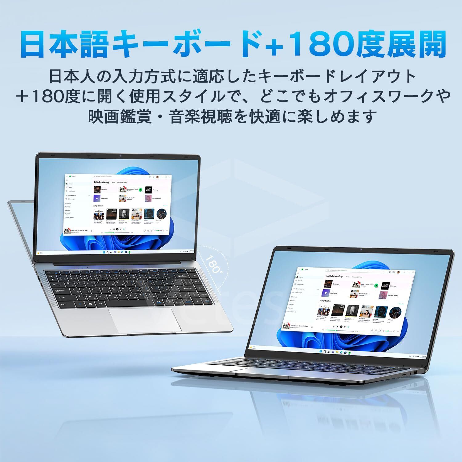 【1.2kg超軽量 ノートパソコン】 ノートパソコンの重量約1.2Kg、薄型で持ち運びに負担を減らせます!小さなカバンやハンドバッグにも収納できるビジネスやプライベートの外出先での使用など、コンパクトで持ち運びなので、外出時に携帯しても身体に負担がかからない。ディスプレイは180度開閉可能です