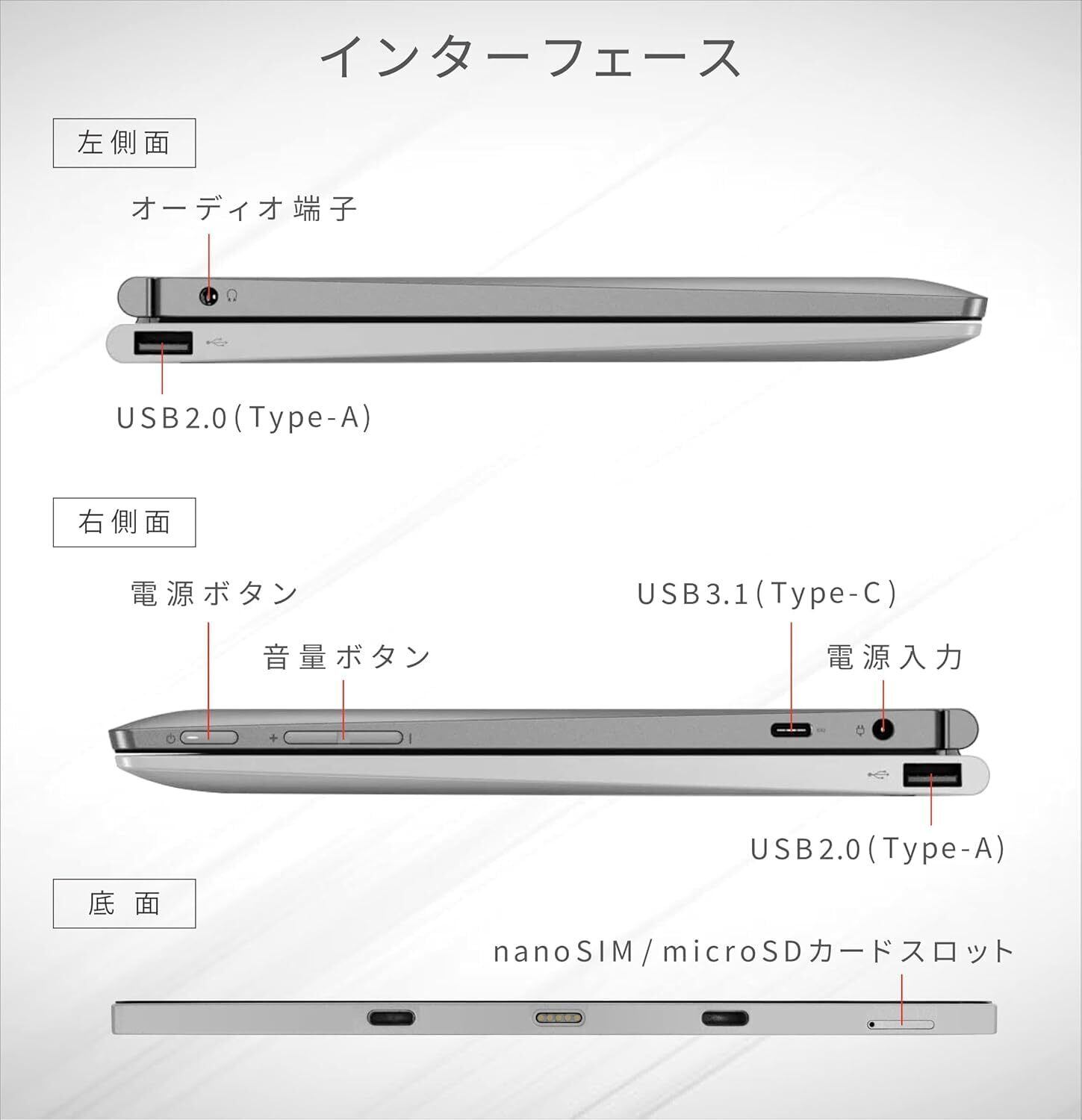 【拡張性もしっかり】USB Type-C(データ/画面出力 )、キーボード側にUSB 2.0×2、microSDカードで容量拡張可能。※本モデルはSIM/WWANに対応しないWi-Fi専用です。