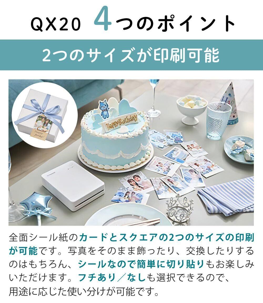「『キヤノン スマホプリンター セルフィー QX20』は、スマートフォンやタブレットから簡単に印刷できる、スタイリッシュでコンパクトなプリンターです。インクを使用せずに高品質な印刷を実現し、あなたの思い出をいつでも美しく残せます!」