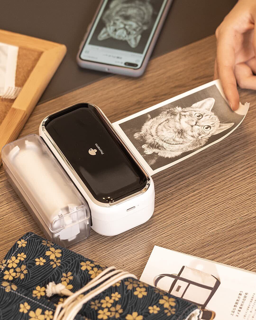 「『Phomemo M03 サーマルプリンター』は、スマートフォンとBluetooth接続で簡単に印刷できるポータブル型のモバイルプリンターです!写真やメモ、手帳、領収書、ラベルなど、さまざまな用途に対応しており、日常生活をさらに便利に彩るアイテムです。」