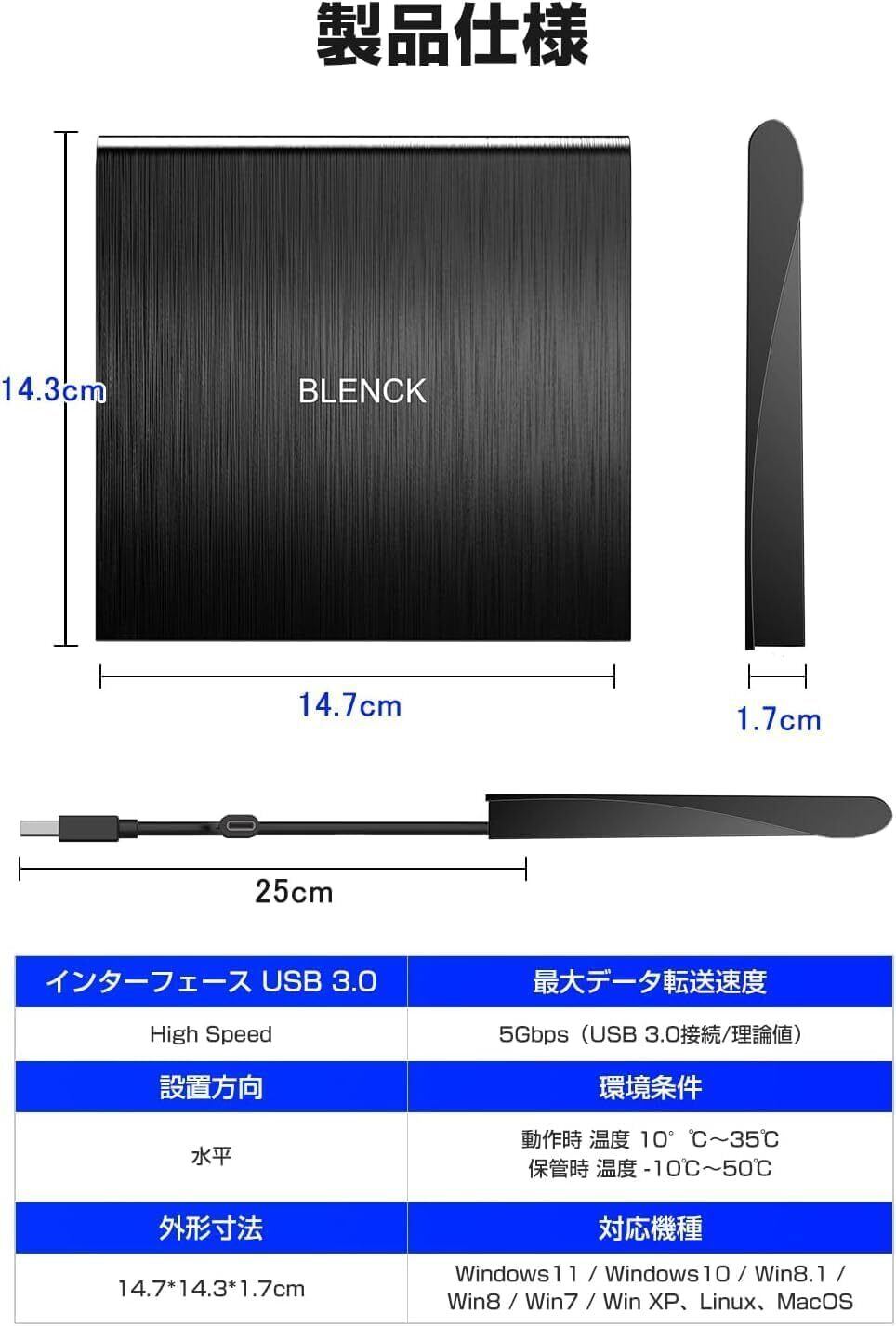 - 本製品はブルーレイには対応しておりません。CD/DVDの読み書きに特化したモデルであるため、目的に応じたご利用をお願いいたします。この『外付けDVDドライブ』が、あなたのデジタルライフをさらに豊かにし、効率的なデータ管理にお役立ていただけることを期待しております!