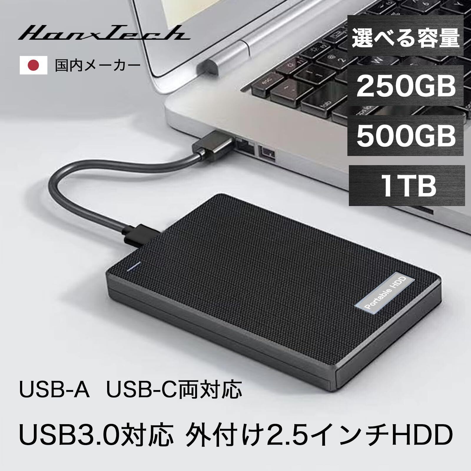 **【限定】Hanx株式会社 日本メーカー USB3.0接続外付け2.5インチHDD 500GB - 高速データ転送が可能なポータブルHDD!**