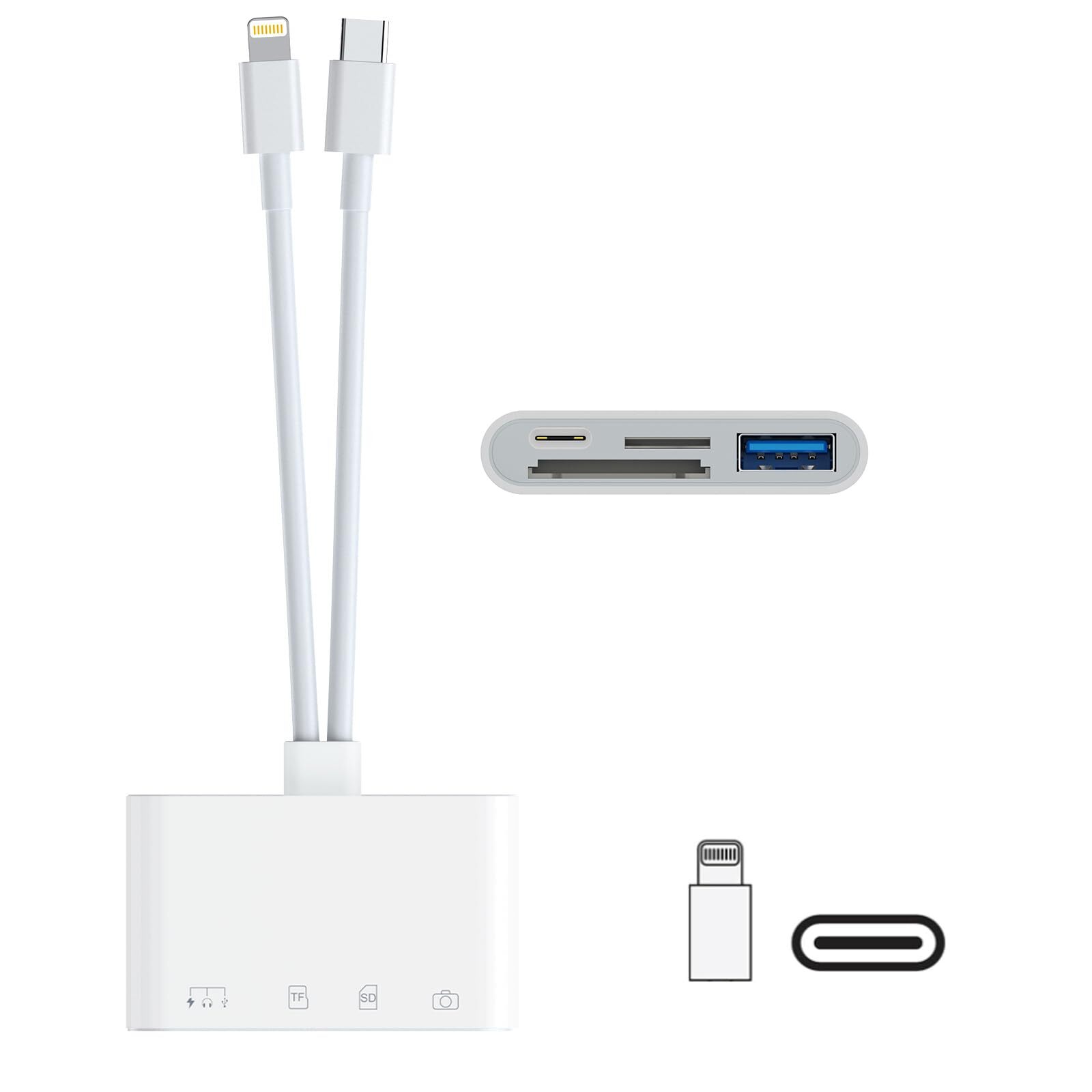 4in1 iPhone SDカードリーダー 【2025新モデル MFi認証品】Lightning/USB C カードカメラリーダー USB/SD/TF変換アダプタ・SDカード・microSDカード・急速充電 | ハイレゾ音質 | データ移行保存 | 高速読み取り・転送・コピー(双方向)| 設定不要 操作不要 iPhone/iPad/PC/Androidスマホなどのデバイスに対応