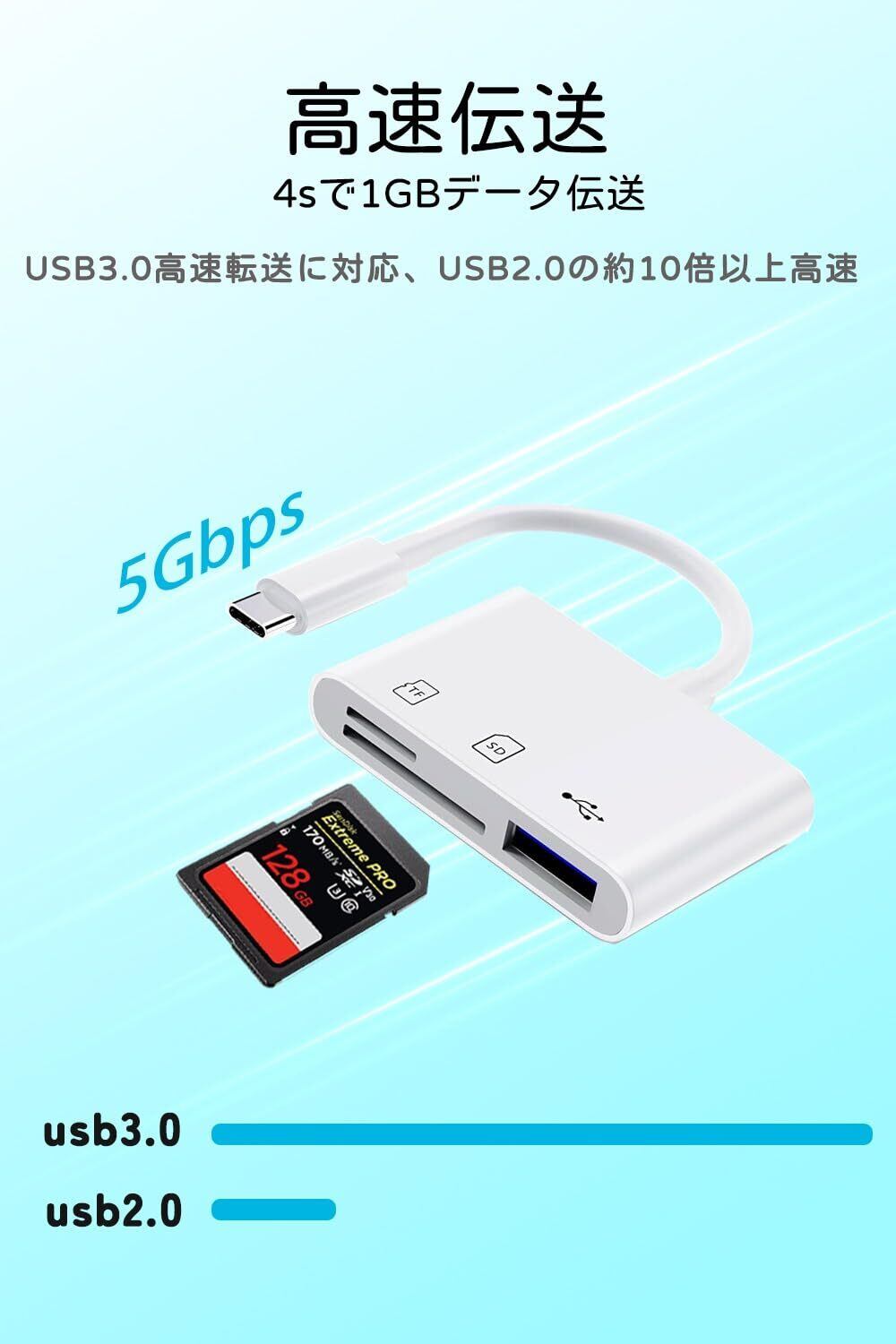 SDカードリーダー 【業界新版 iPhone16に対応】 Type-C メモリカードリーダー 3in1 USB/SD/TF変換アダプタ 0TG機能 設定不要 写真/ビデオ 高速伝送 双方向転送 カメラリーダー iPhone15/タイプC スマホ/MacBook/PC/Galaxy/Android/USB Cなど機器に適用