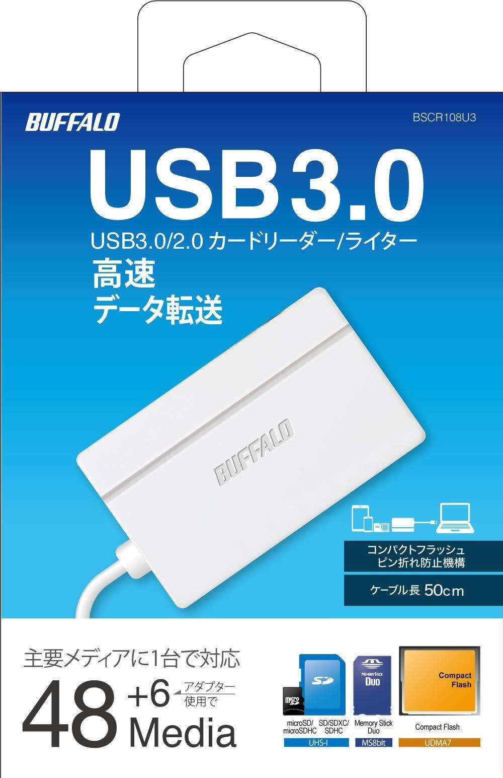 バッファロー BUFFALO USB3.0 マルチカードリーダー スタンダードモデル ホワイト BSCR108U3WH