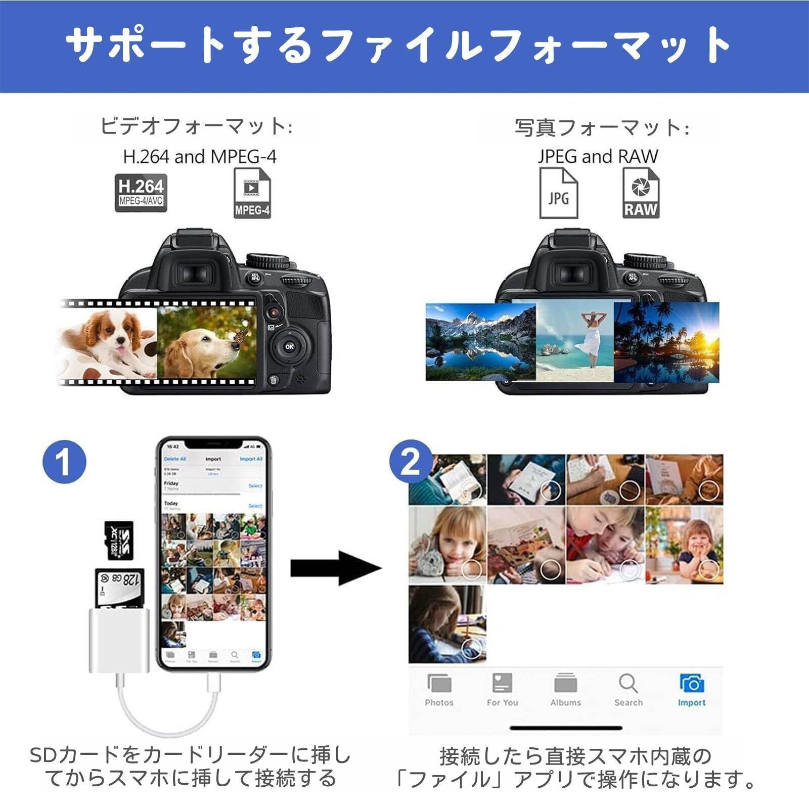 【プラグ&プレイ・写真愛好家向け】アプリや設定は要らなく、SDカードを差し込みだけで簡単に読み込みできて写真を転送できます。コンパクトなデザインで、旅行にも持ち運びも便利です。このsd card readerを使用すれば、いつでもどこでもデジカメで撮影した写真やビデオを友人と共有したり、インスタに投稿したりすることができます。