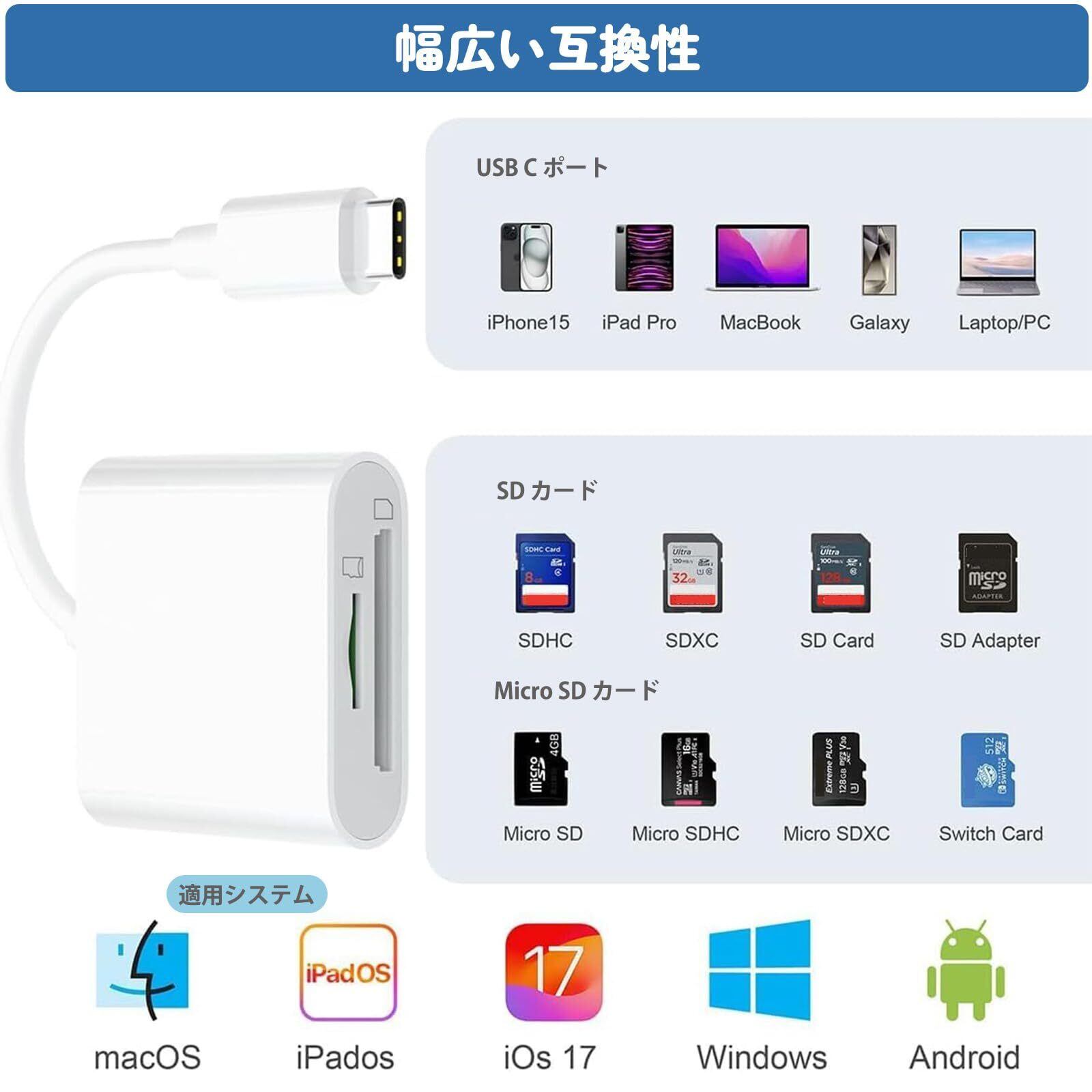 SDカードリーダー タイプc 【2025新安定版】 Type-C SD TFカード 2in1 メモリカードリーダー OTG機能 設定不要 デジカメ スマホ データ転送 高速双方向 ビデオ/ファイル/写真読み込み 変換アダプタ i-Phone15/i-Pad/Mac/Android適用