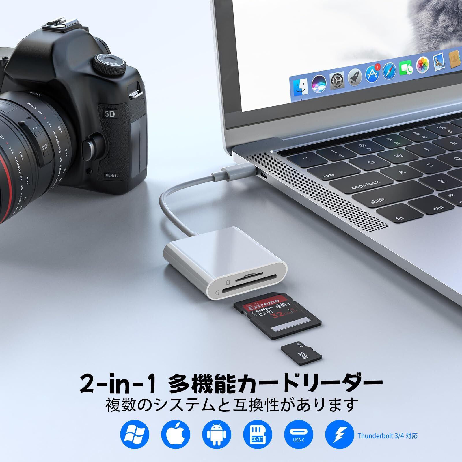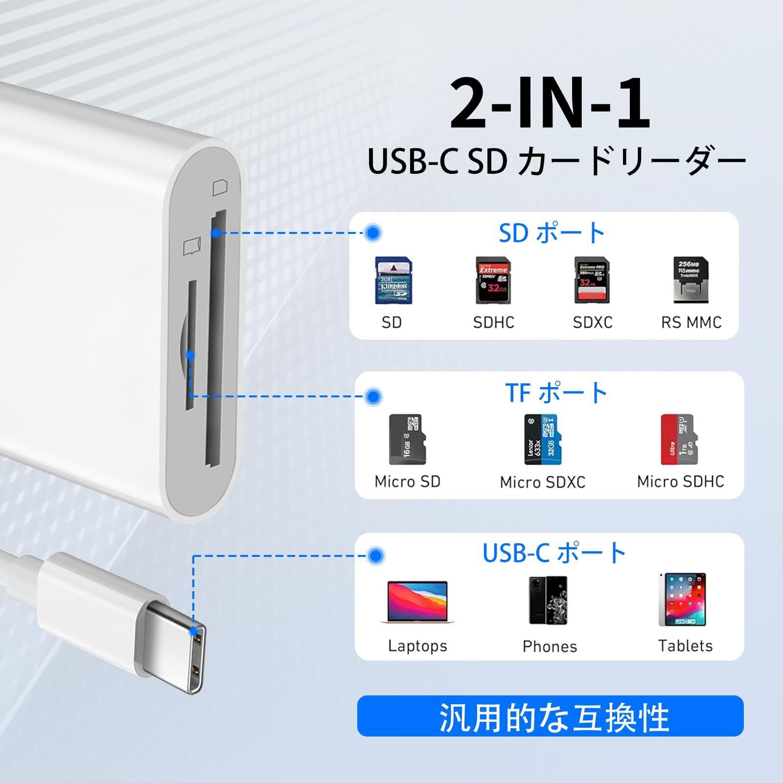 - 本製品は特定のデバイスとの互換性があるため、使用前に対応機器を確認してください。この『2025NEW チップ Type-C カードリーダー 2in1』が、あなたのデータ管理をより快適にすることを期待しています!