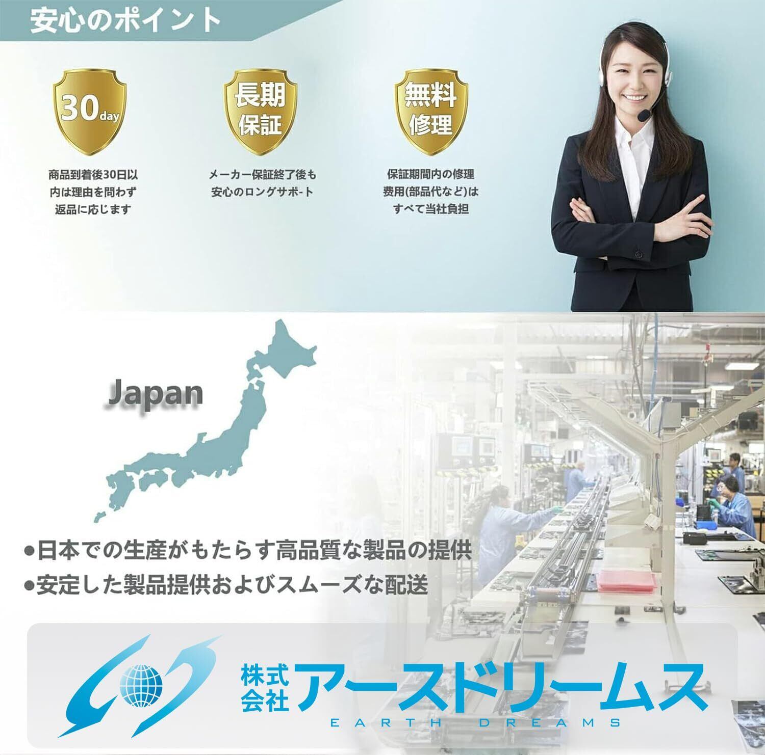 「1年間の日本国外サポートがついており、ご不明な点やトラブルが発生した際にも安心です。迅速かつ丁寧なサポートを通じて、お客様の満足度向上に努めています。」