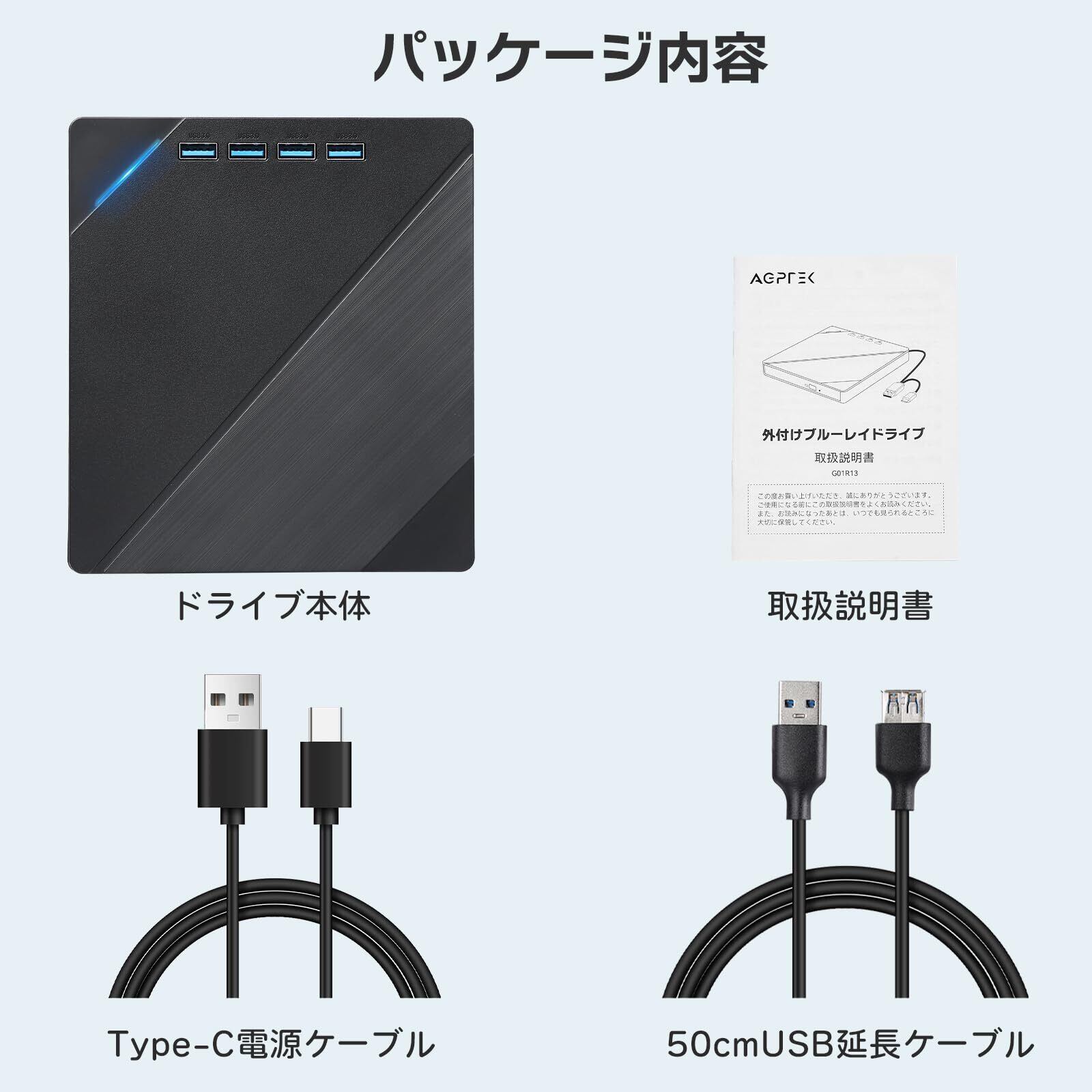 **【2025年新登場】ブルーレイドライブ 外付け USB3.0&Type-C両接続 BD/CD/DVD プレーヤー 読取/書込可 ブラック**