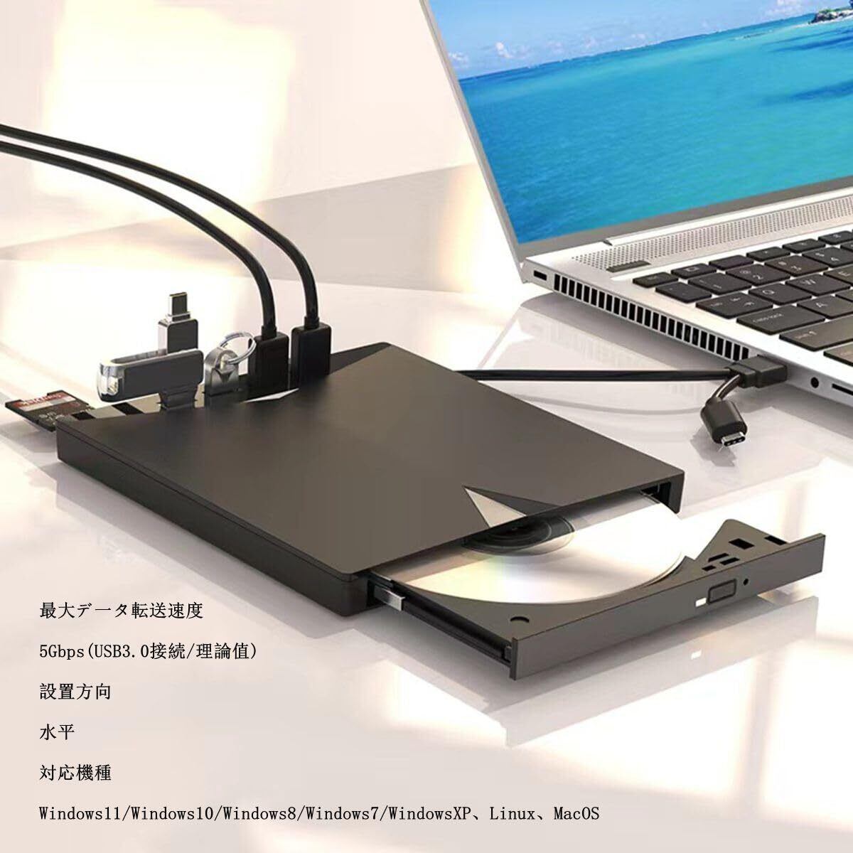 【6つの拡張ポート搭載・多機能ハブとして活躍】 この blu-ray 外付けドライブ には、USBポート・SD/TFカードスロットなど計6ポートを搭載。 外付けドライブ としてだけでなく、USBメモリやマウス、キーボードを同時に接続でき、ハブ機能付きマルチデバイスドライブとして活躍します。 1台でデータ管理・作業効率が大幅にアップし、出張先や自宅でも頼れる相棒となります。