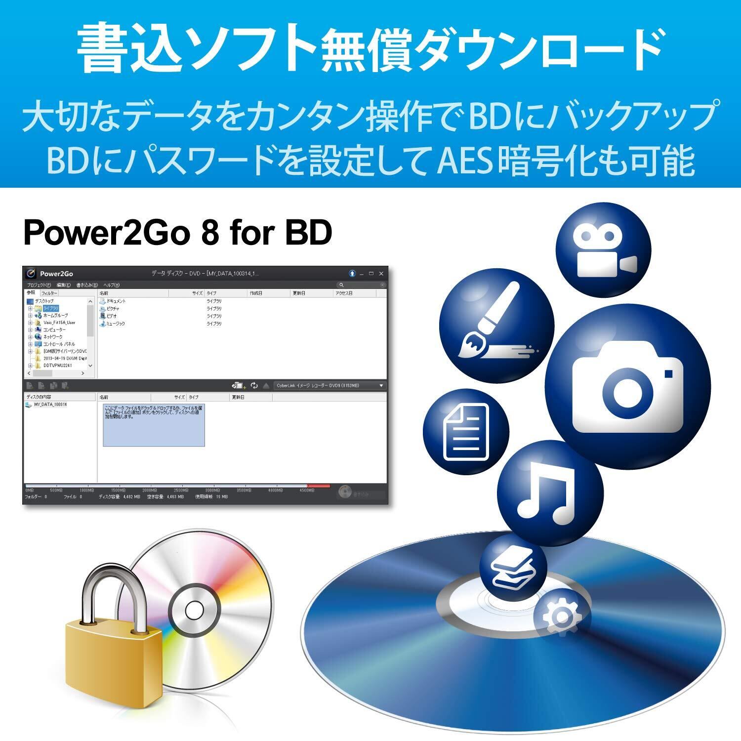 「私たちのドライブは、BD、DVD、CDの再生・書き込みをサポートし、音楽、映画、データバックアップなど多様な用途に応じて活用できます。また、付属の書込ソフトCyberLink Power2Goにより、簡単にデータを編集・整理することが可能です。」