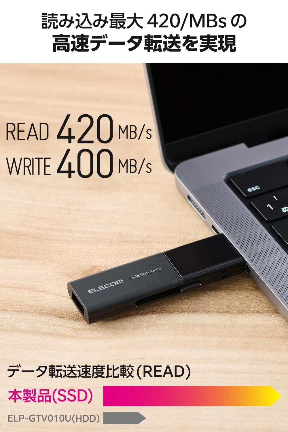 ■読み込み最大420MB/s・書き込み最大400MB/sの高速データ転送を実現する、USB 5Gbps(USB3.2(Gen1))外付けポータブルSSDです。