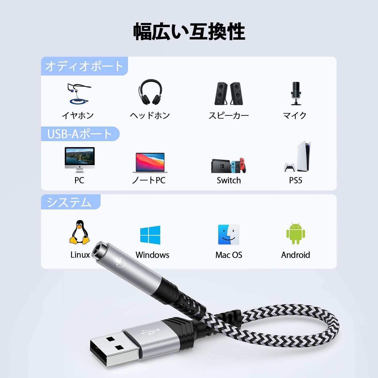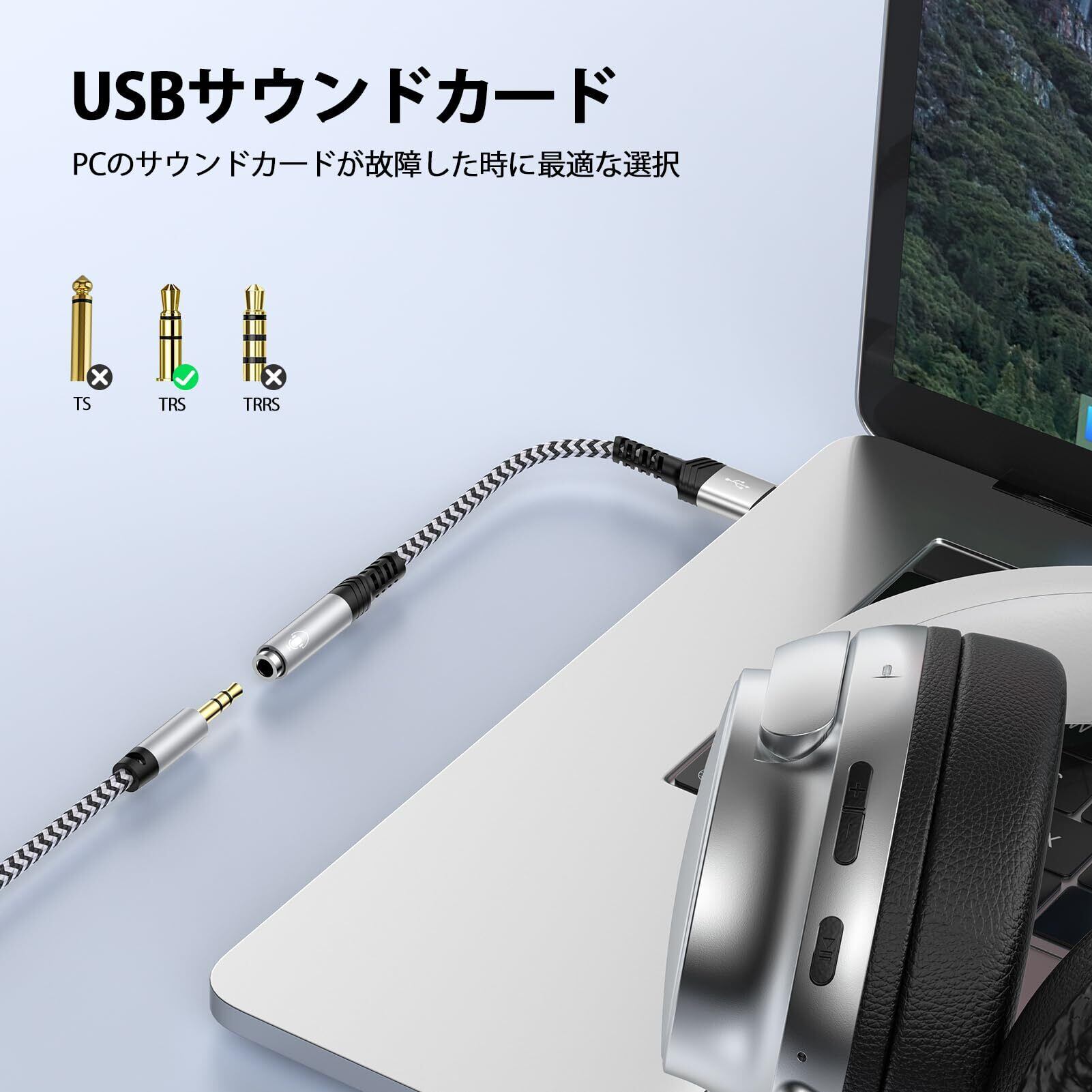 USB外付け サウンドカード usb イヤホンジャック 変換 USB オーディオ 変換アダプタ USBポート-4極(TRRS)3.5mmミニジャック変換ケーブル USB外付け サウンドカード Windows、Mac OS/X、PS4、Linux、Chromebook、Raspberry Pi等対応