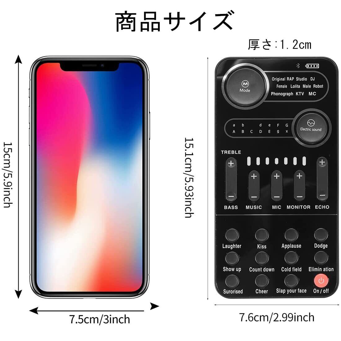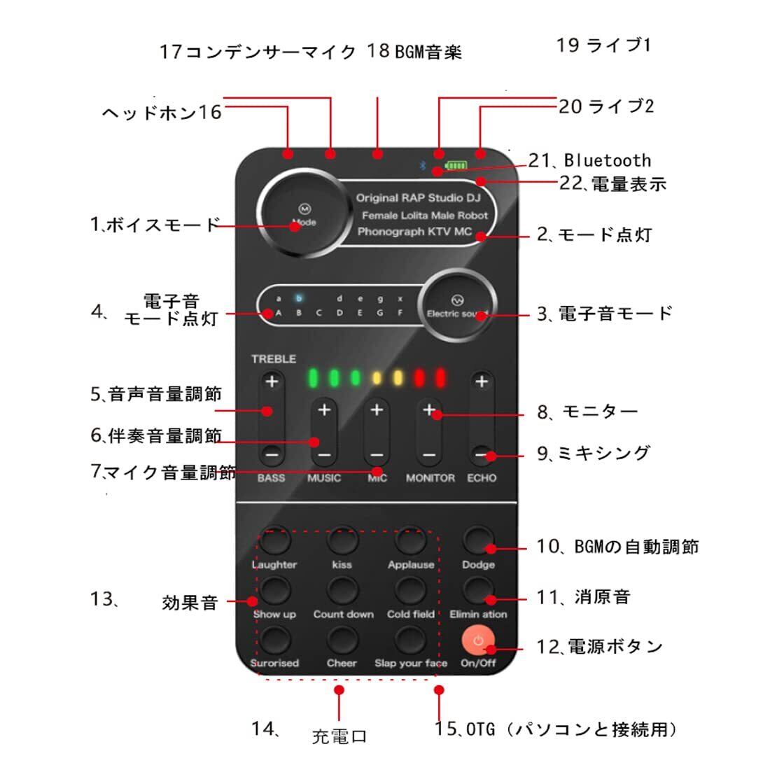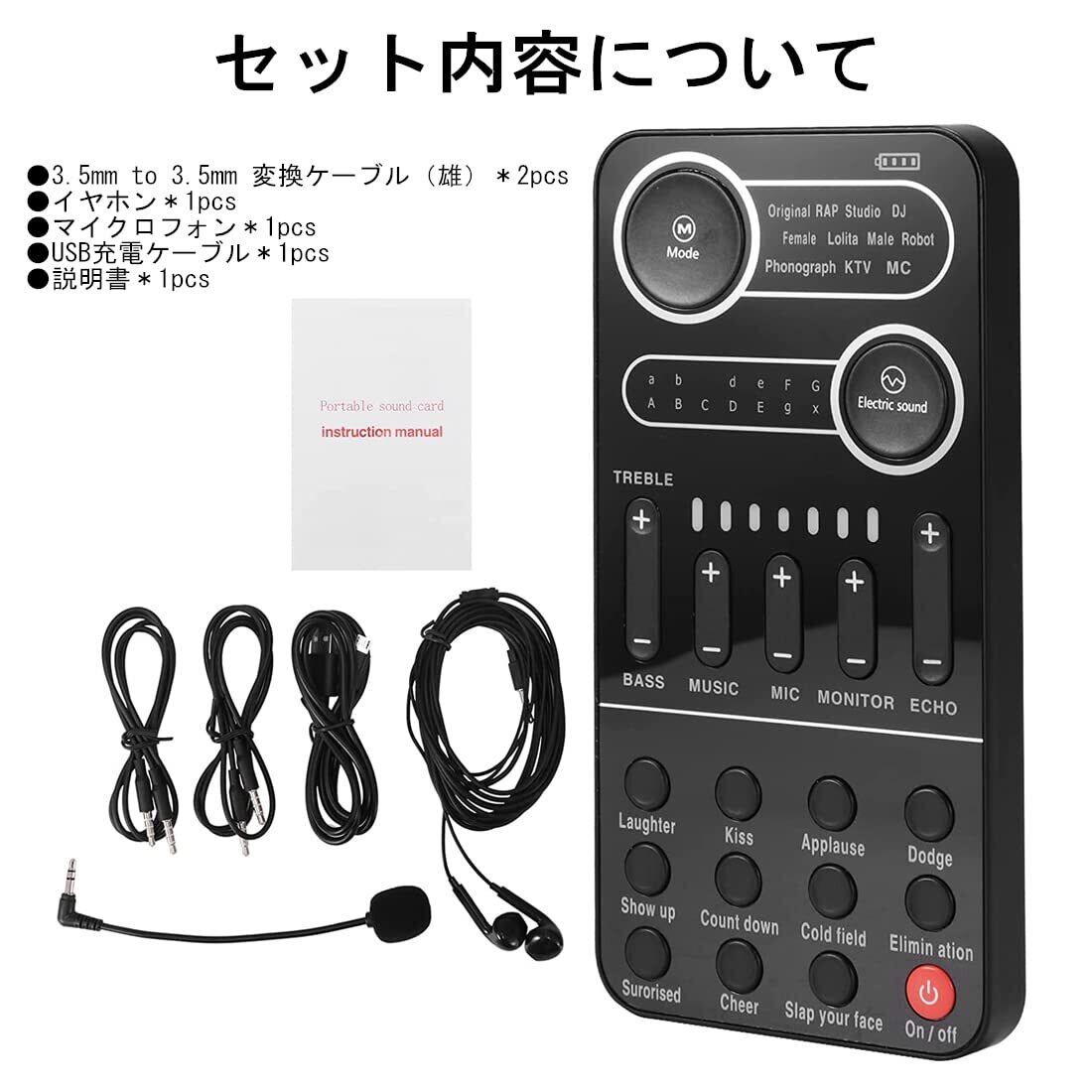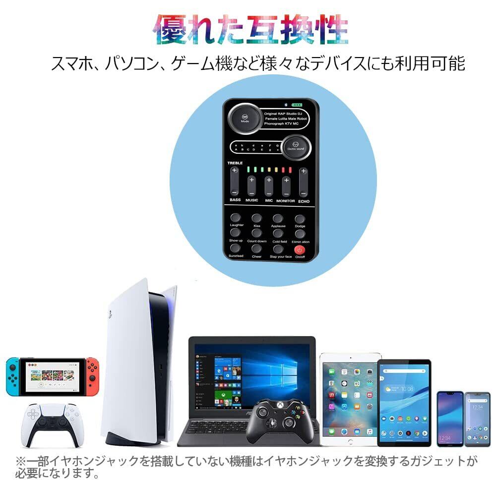 ※多機能搭載サウンドカード&9種類効果音を搭載:変声器以外には他の機能にも搭載されています。共13種類電子音があります。笑い声、拍手、出番前の声、カウントダウン、カラスの鳴き声、驚きの声、歓声、顔を叩く音の9種類効果音にもあります。